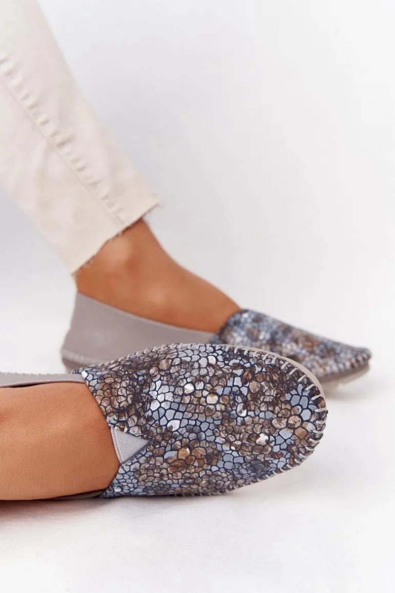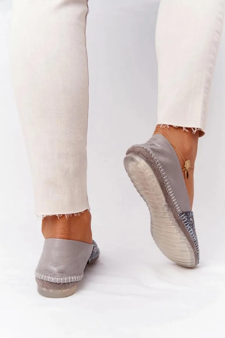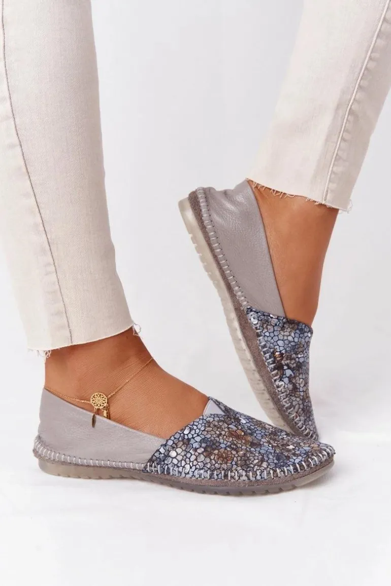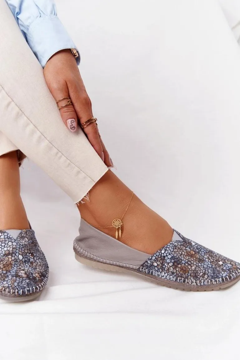 Damskie Skórzane Baleriny Maciejka 01930-86 Popielate