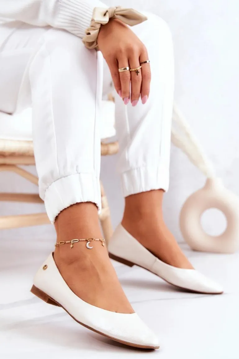 Damskie Skórzane Baleriny Maciejka 04100-26 Jasnobeżowe