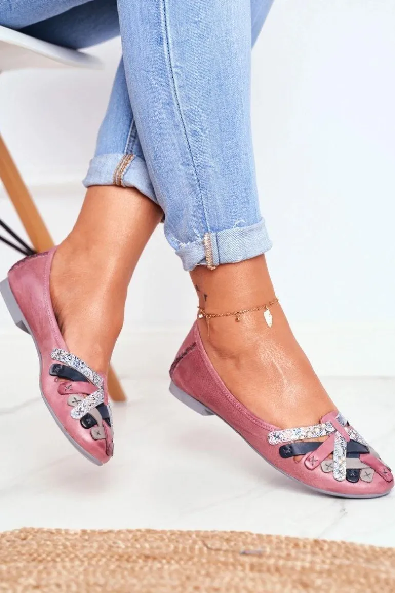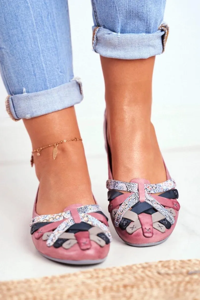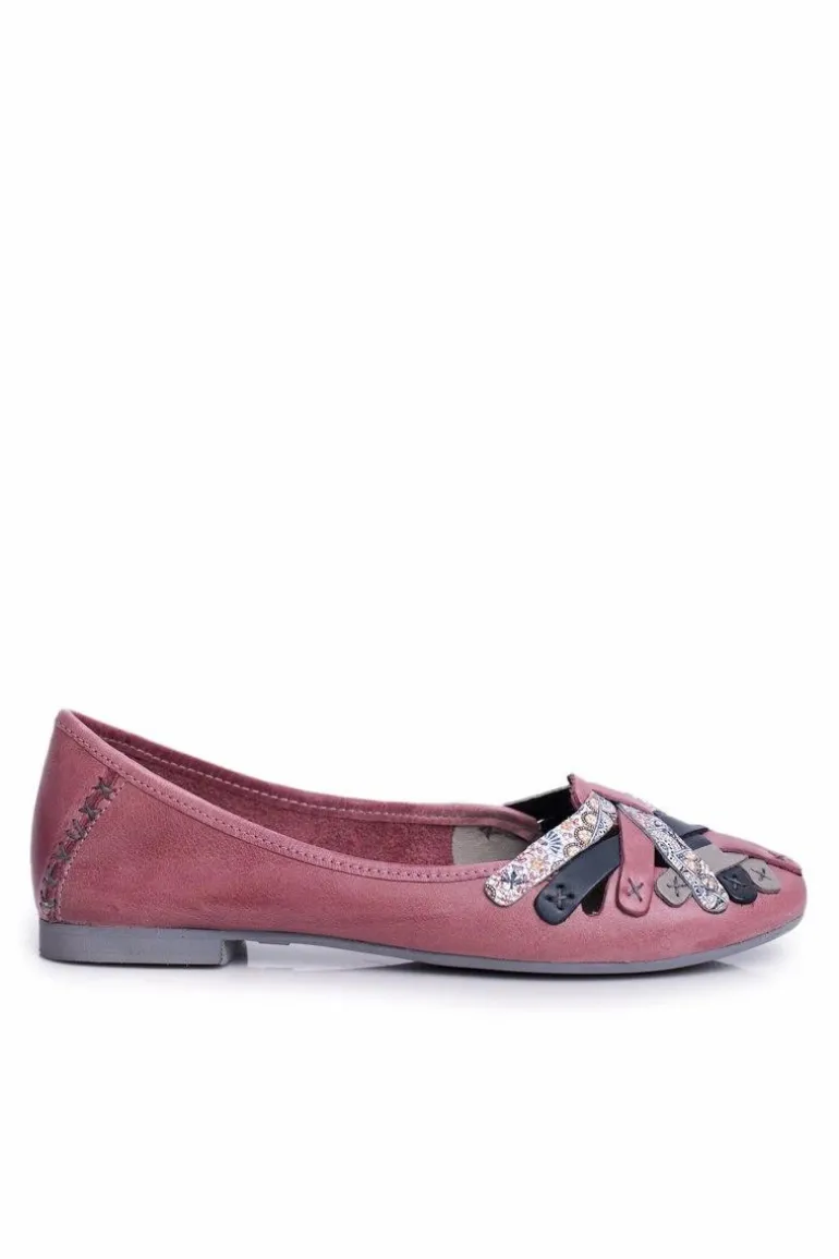 Damskie Skórzane Baleriny Maciejka Różowe 01358-15