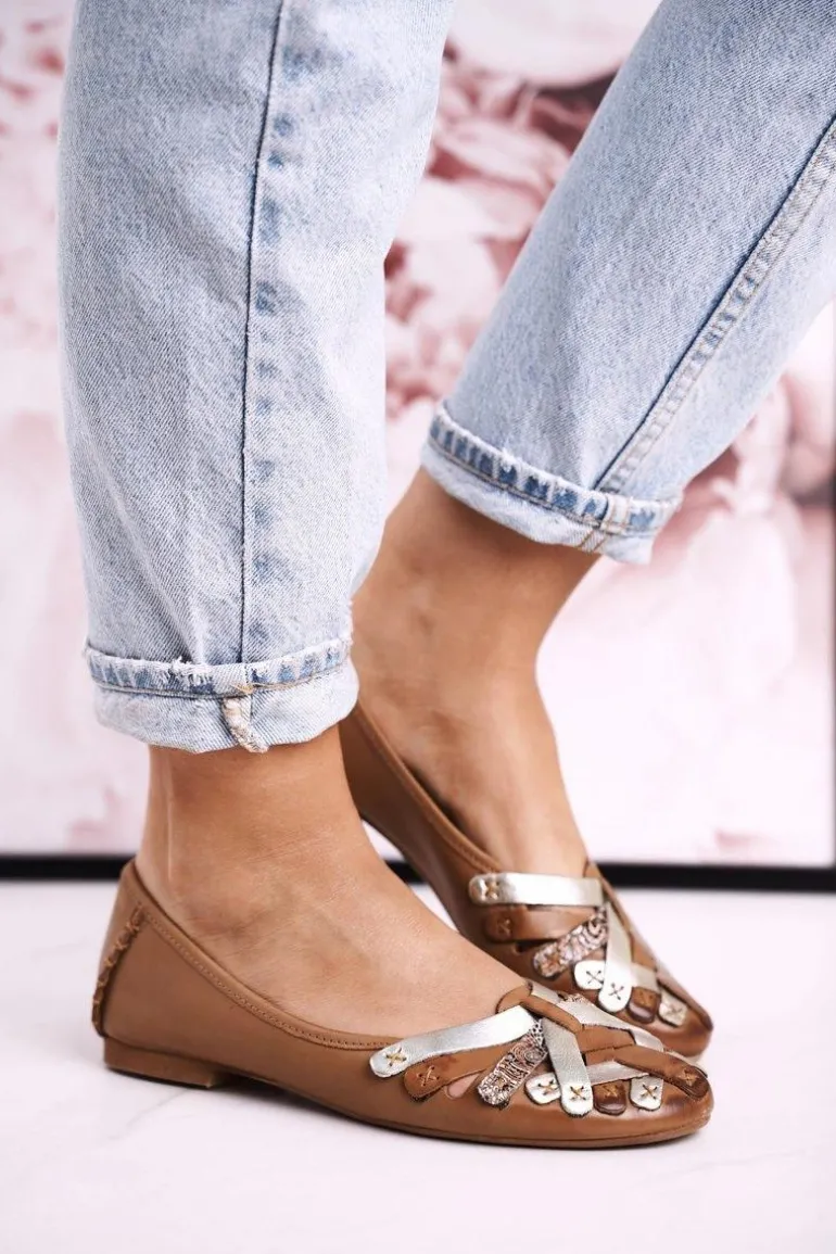 Damskie Skórzane Baleriny Maciejka Rude 01358-46