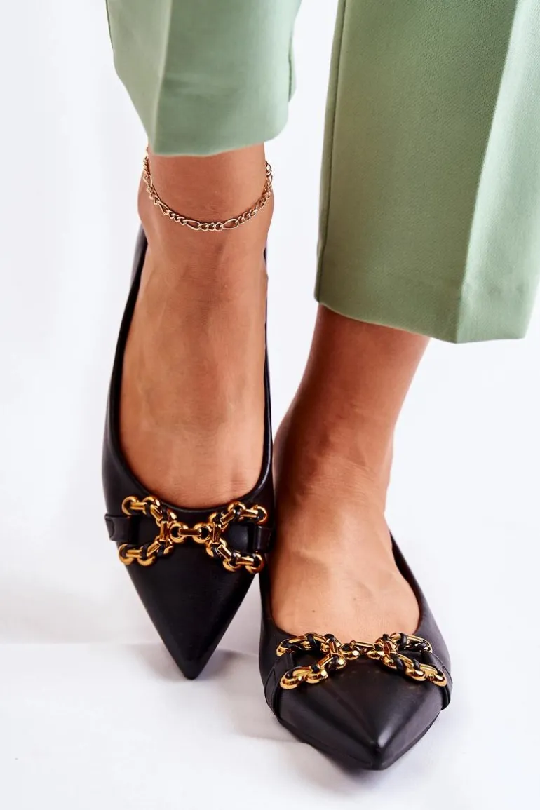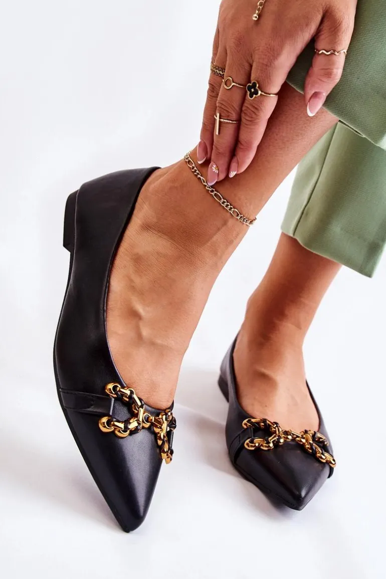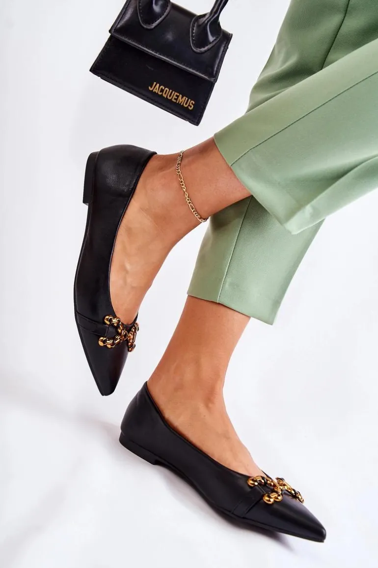 Damskie Skórzane Baleriny W Szpic Z Ozdobą Czarne Carlos