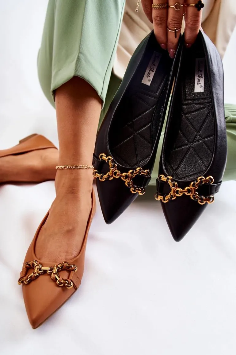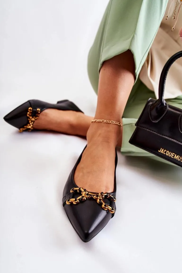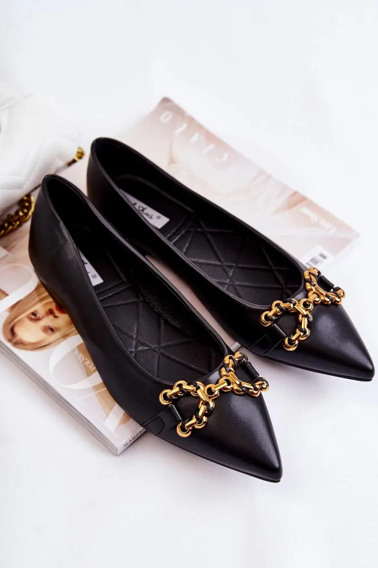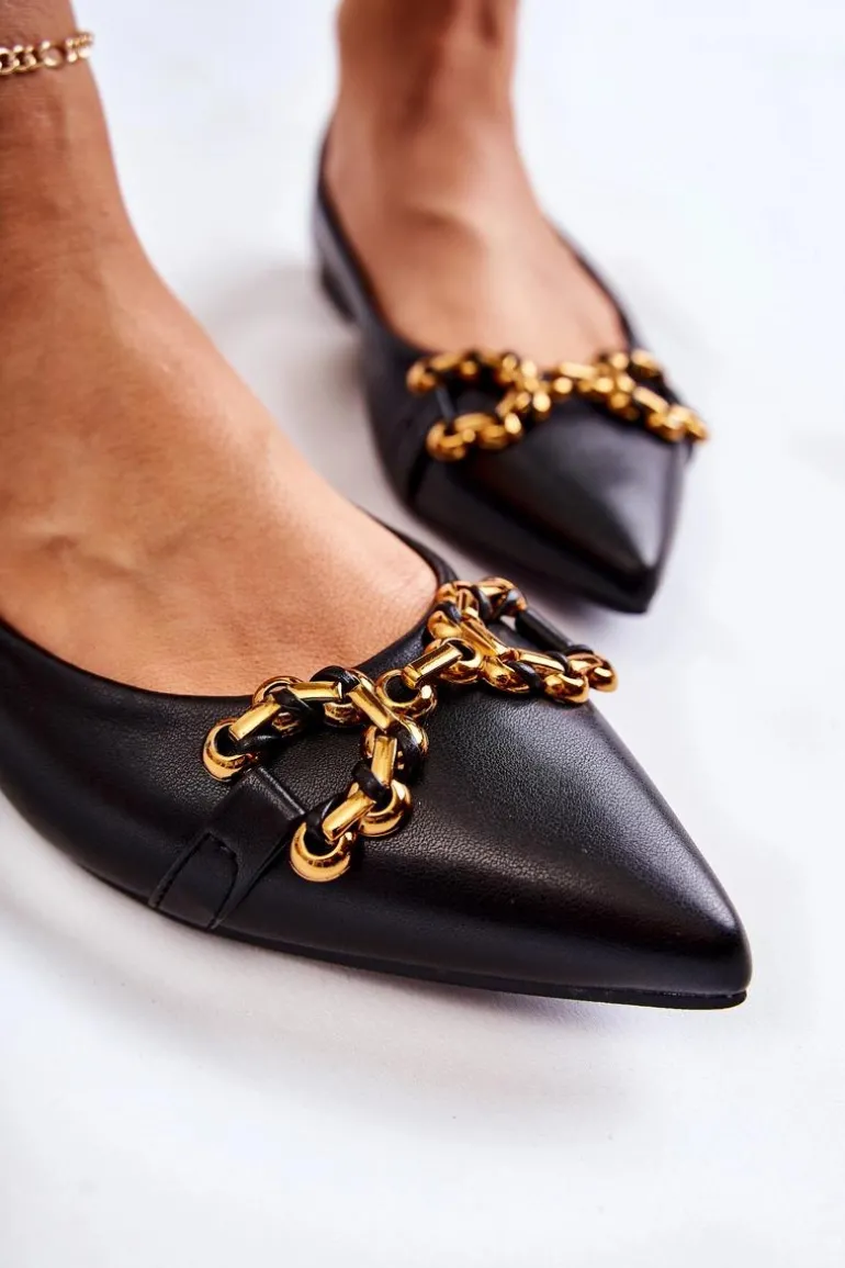 Damskie Skórzane Baleriny W Szpic Z Ozdobą Czarne Carlos