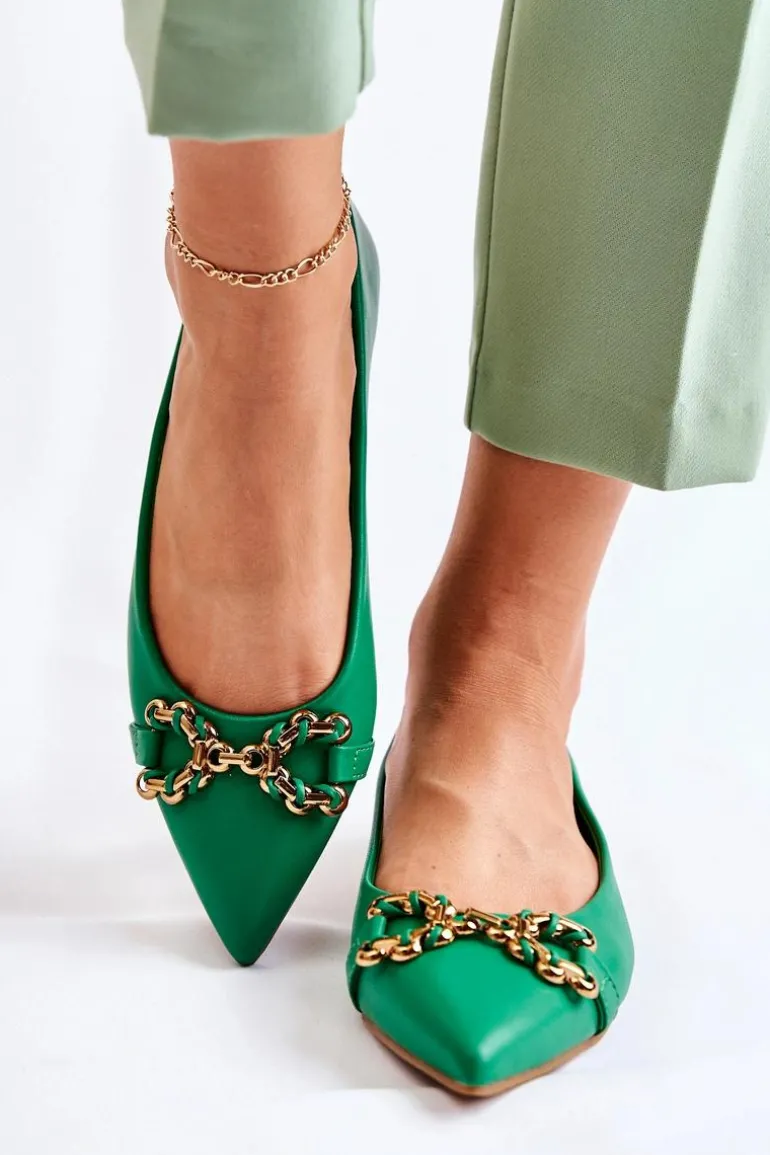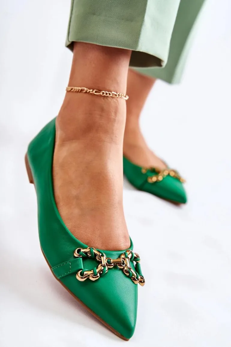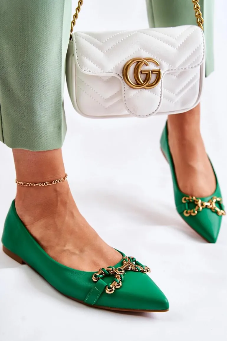 Damskie Skórzane Baleriny W Szpic Z Ozdobą Zielone Carlos