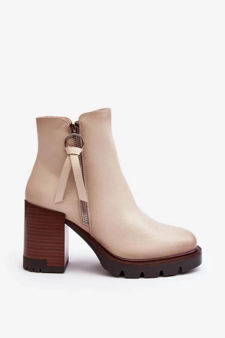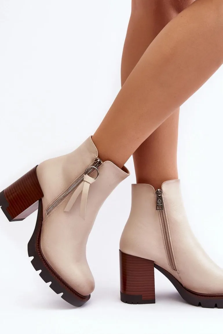 Botki na masywnym obcasie w postaci słupka i platformie zostały wykonane z eko skóry. Zapinane z boku na suwak. Dodatkowo posiadają usztywniany zapiętek. Środek został ocieplony kocem obuwniczym. Na zewnętrznej stronie znajduje się ozdobny zamek. Koniecznie powinnaś mieć ten model w swojej garderobie! Przy wyborze rozmiaru prosimy sugerować się tabelą rozmiarów.