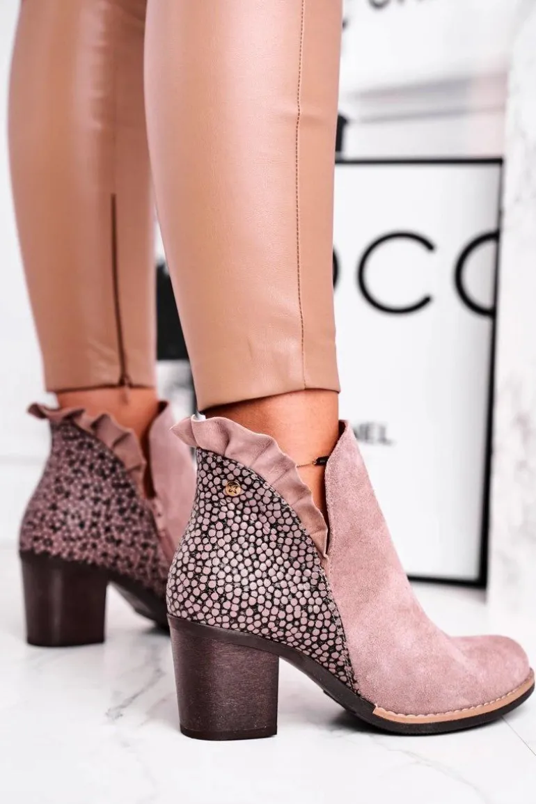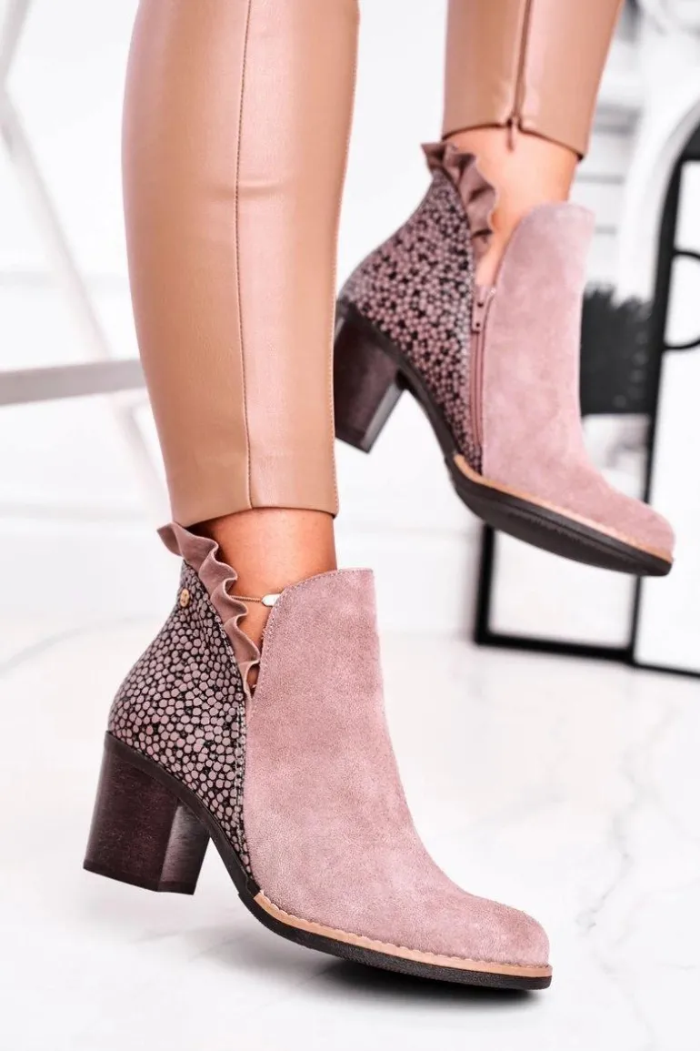 Damskie Skórzane Botki Na Słupku Maciejka Beżowe 04833-04