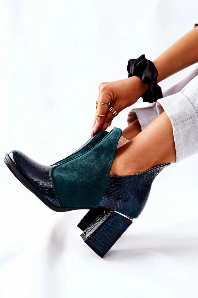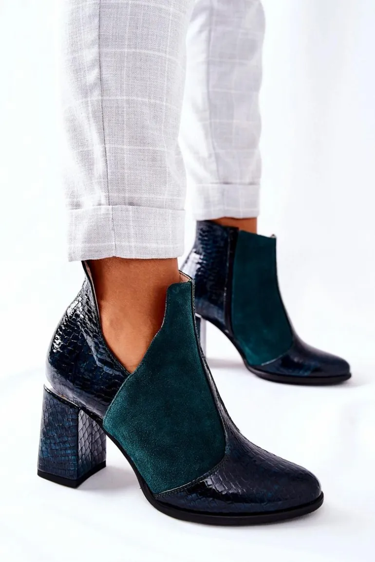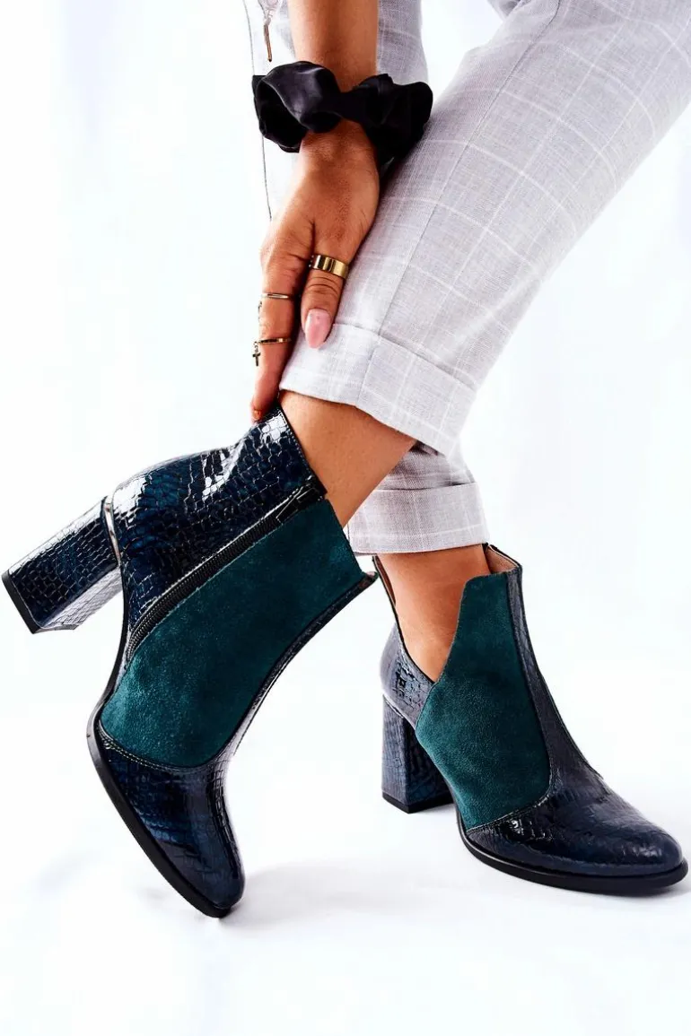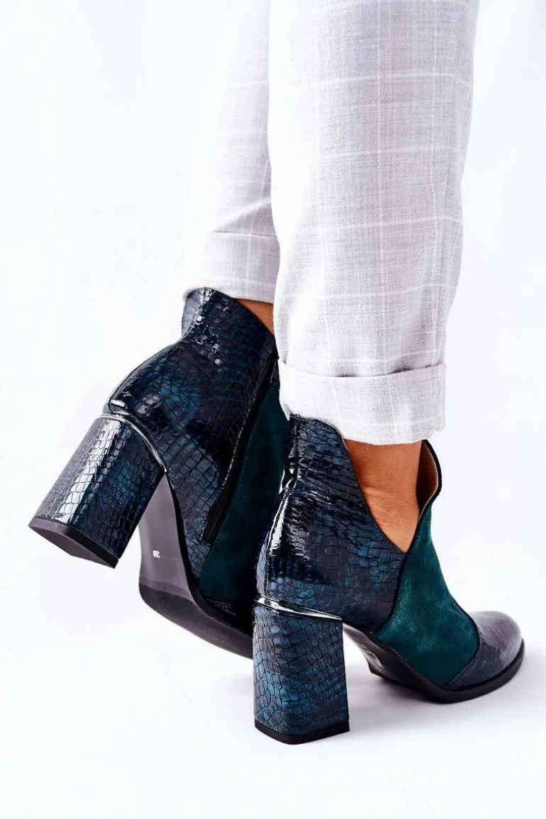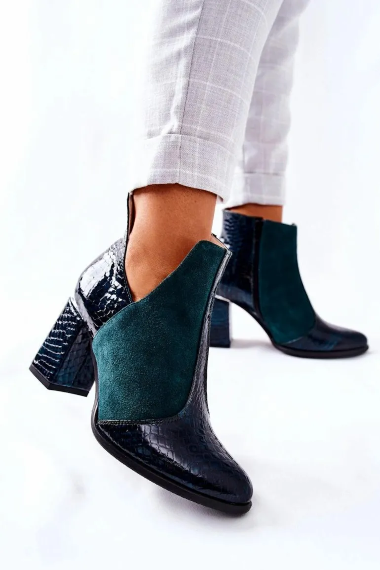 Damskie Skórzane Botki Na Słupku Zielone I Wish