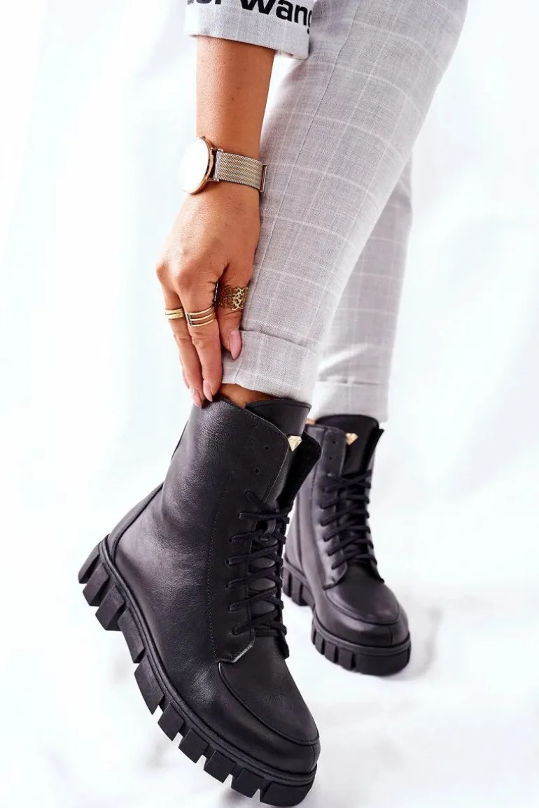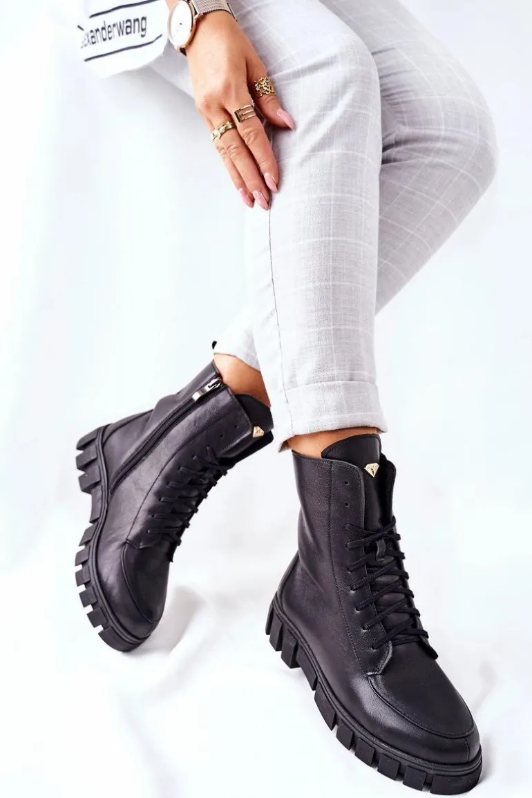 Damskie Skórzane Botki Nicole 2673 Czarne