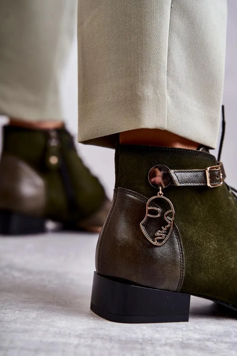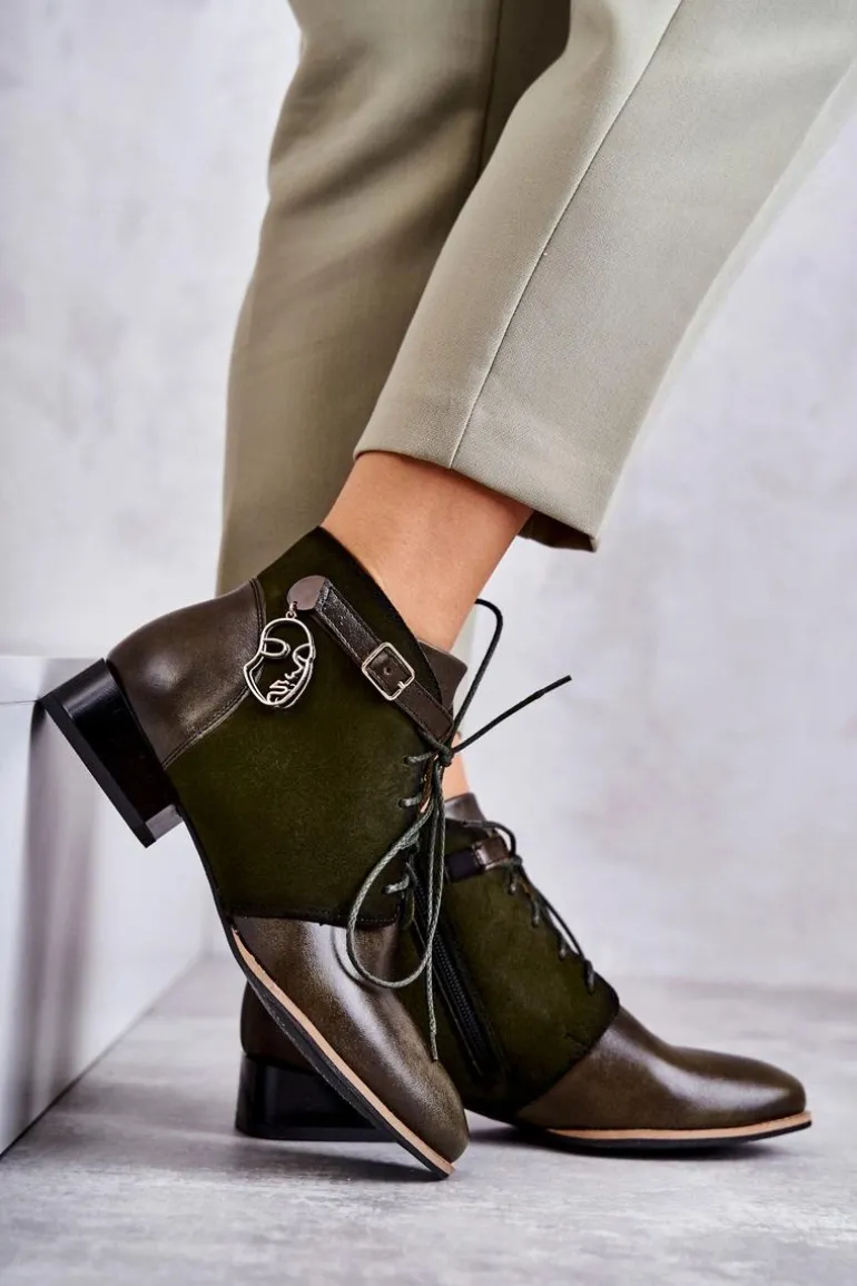 Świetne trzewiki od renomowanej marki Maciejka. Wykonane z najwyższej jakości skór naturalnych. Dodatkowo z boku cholewki znajduje się regulowany pasek oraz elementy w kształcie twarzy. Model klasycznie sznurowany z dodatkowym suwakiem. Botki zostały osadzone na płaskim obcasie. Środek został ocieplony miłym w dotyku kocem obuwniczym. Przy wyborze rozmiaru prosimy sugerować się tabelą rozmiarów.