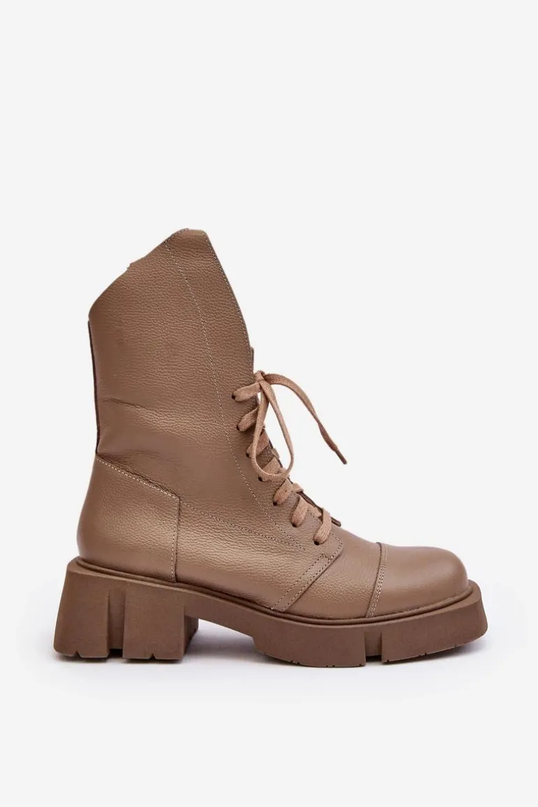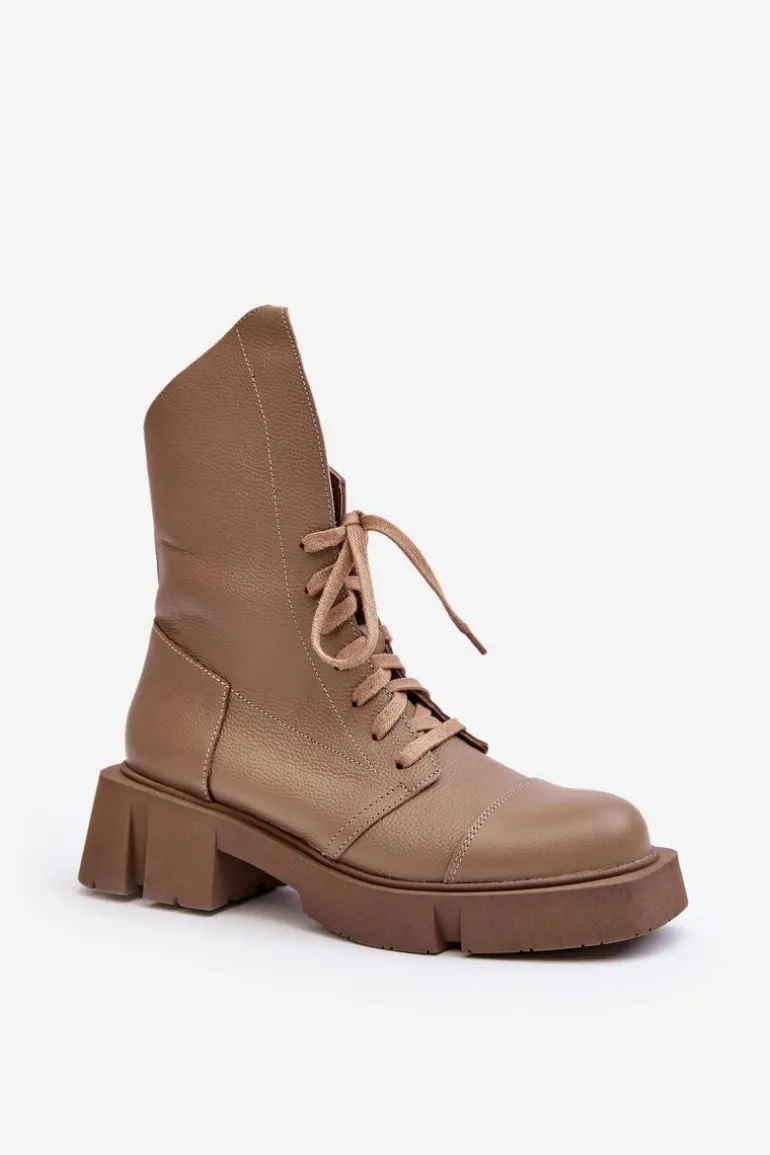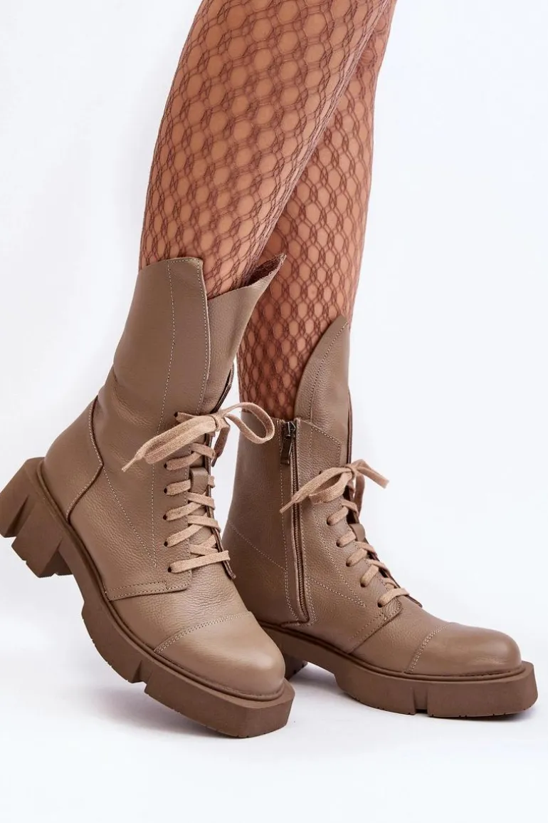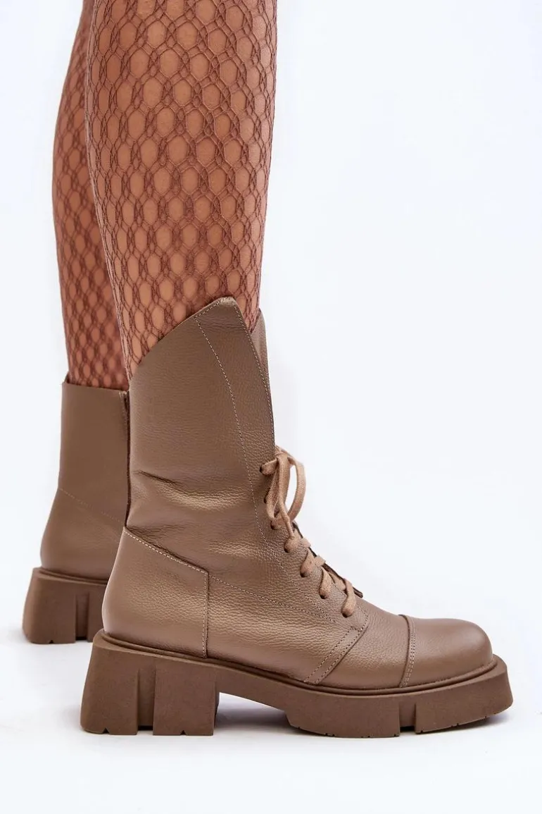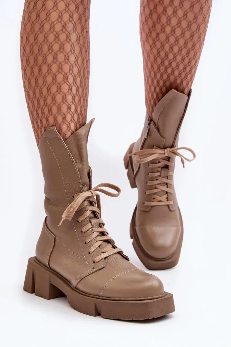 Botki damskie wykonane ze skóry naturalnej. Osadzona na masywnym, płaskim obcasie oraz platformie. Zapinane na suwak. Z przodu sznurowanie. Zapiętek jest usztywniony. Miękka wkładka zapewni komfort podczas użytkowania. Noski zaokrąglone. Ten modny model będzie pasować do wielu jesienno-zimowych stylizacji! Przy wyborze rozmiaru prosimy sugerować się tabelą rozmiarów.
