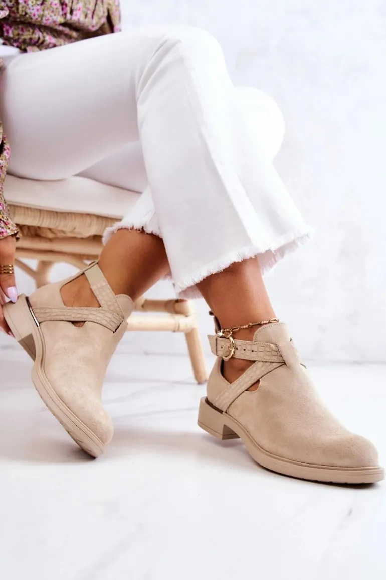 Cudne botki wykonane z naturalnej zamszowej skóry. Wkładka wykonana z naturalnej skóry, co sprawia, że są bardzo komfortowe podczas użytkowania. Z boku cholewki znajdują się wycięcia oraz regulowany pasek zapinany na sprzączkę. Plaski obcas zapewnia stabilizację. Tłoczona faktura oraz modny fason sprawiają, że te buty wyglądają naprawdę wyjątkowo. Nosek w kształcie migdała. Antypoślizgowa podeszwa. Koniecznie sprawdź także pozostałe modele skórzanych butów dostępnych w naszej ofercie! Przy wyborze rozmiaru prosimy sugerować się tabelą rozmiarów.