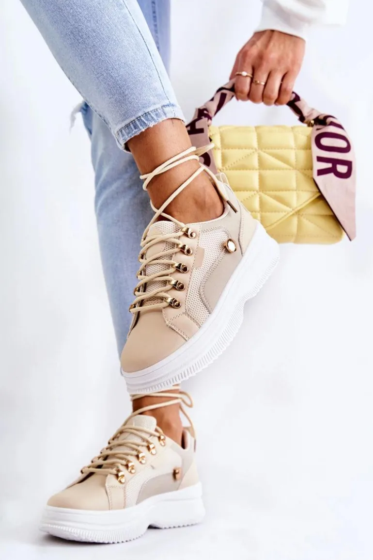 Klasyczne sneakersy damskie zostały wykonane z wysokiej jakości eko skóry oraz materiału tekstylnego. Buty te posiadają także wygodną, materiałową wkładkę. Osadzone na platformie z tworzywa gumowego. Z boku cholewki umieszczono ozdobne elementy. Model klasycznie wiązany na okrągłe sznurowadła. Buty posiadają usztywniany zapiętek. Nosek zaokrąglony. Koniecznie powinnaś mieć ten model w swojej szafie! Przy wyborze rozmiaru prosimy kierować tabelą rozmiarów.
