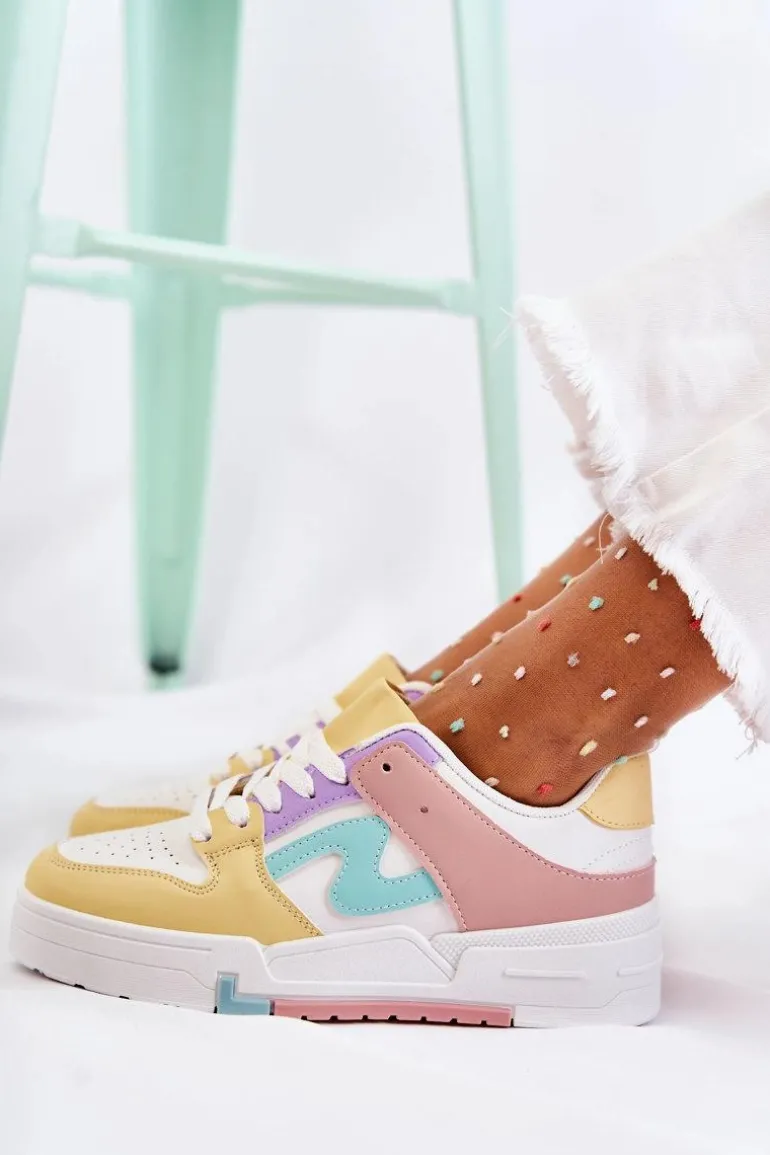 Buty sportowe, które koniecznie musisz mieć! Wykonane z eko skóry. Osadzone na masywnej platformie z wypustkami po bokach. Na przodzie znajduje się delikatna perforacja. Sneakersy posiadają wiązanie na płaskie sznurowadła, dzięki któremu można je idealnie dopasować. Miękka wkładka została wykonana z materiału i jest dodatkowo wyciągana. Model ten świetnie sprawdzi się na co dzień. Przy wyborze rozmiaru prosimy kierować tabelą rozmiarów.