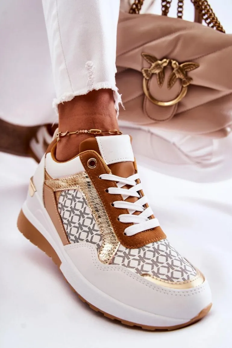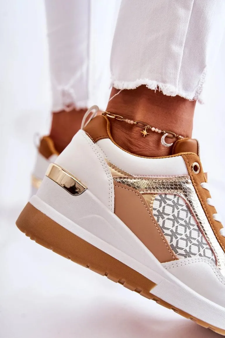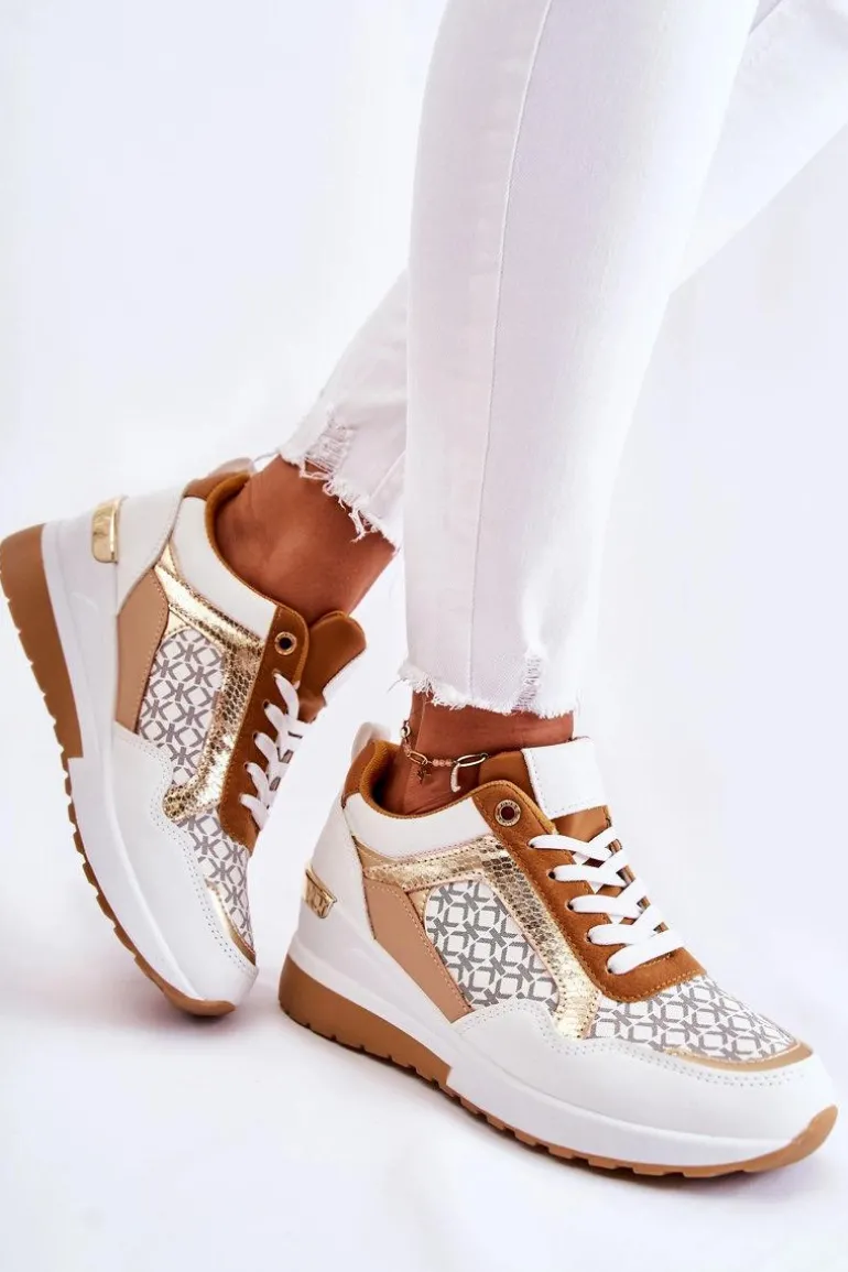 Damskie Skórzane Buty Sportowe Na Koturnie Białe Catrine