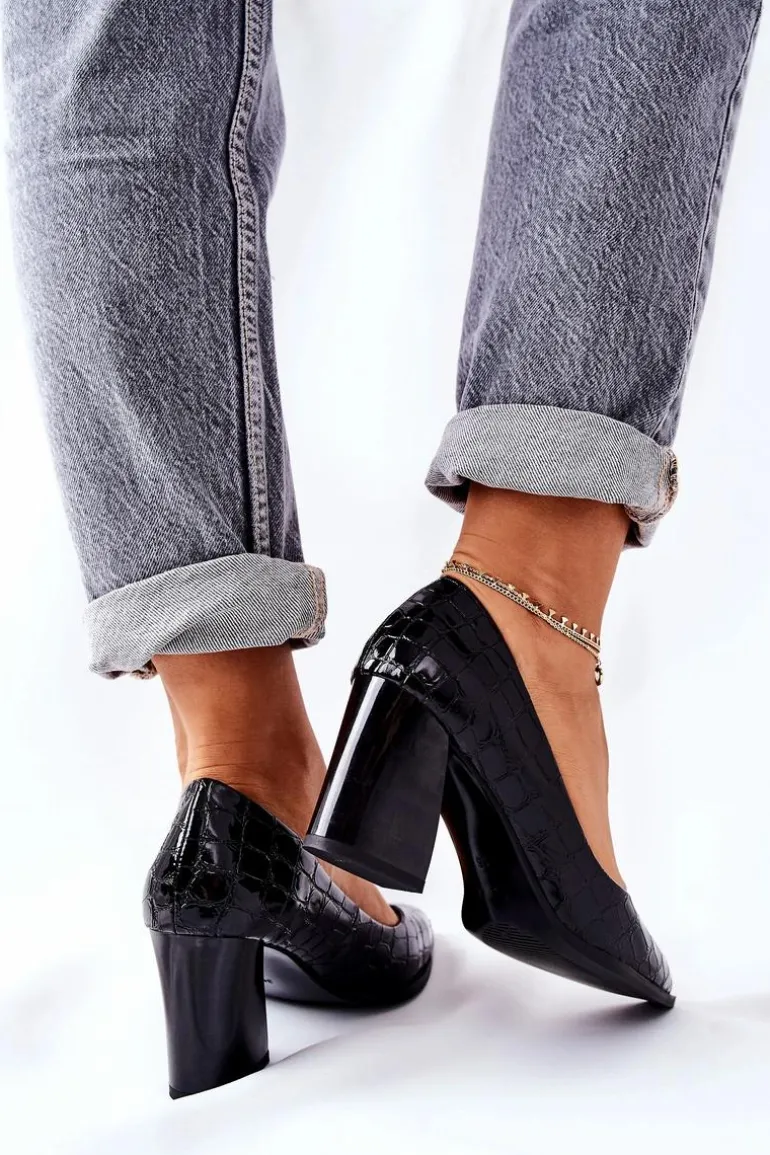 Eleganckie i niesamowicie wygodne czółenka. Buty wykonane są ze skóry ekologicznej. Posiadają wkładkę ze skóry naturalnej. Faktura skóry krokodyla. Przy wyborze rozmiaru prosimy sugerować się tabelą rozmiarów.