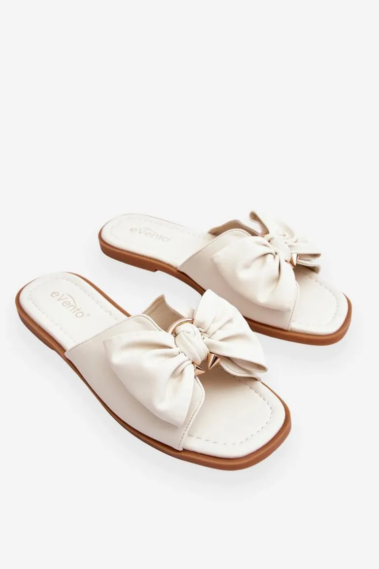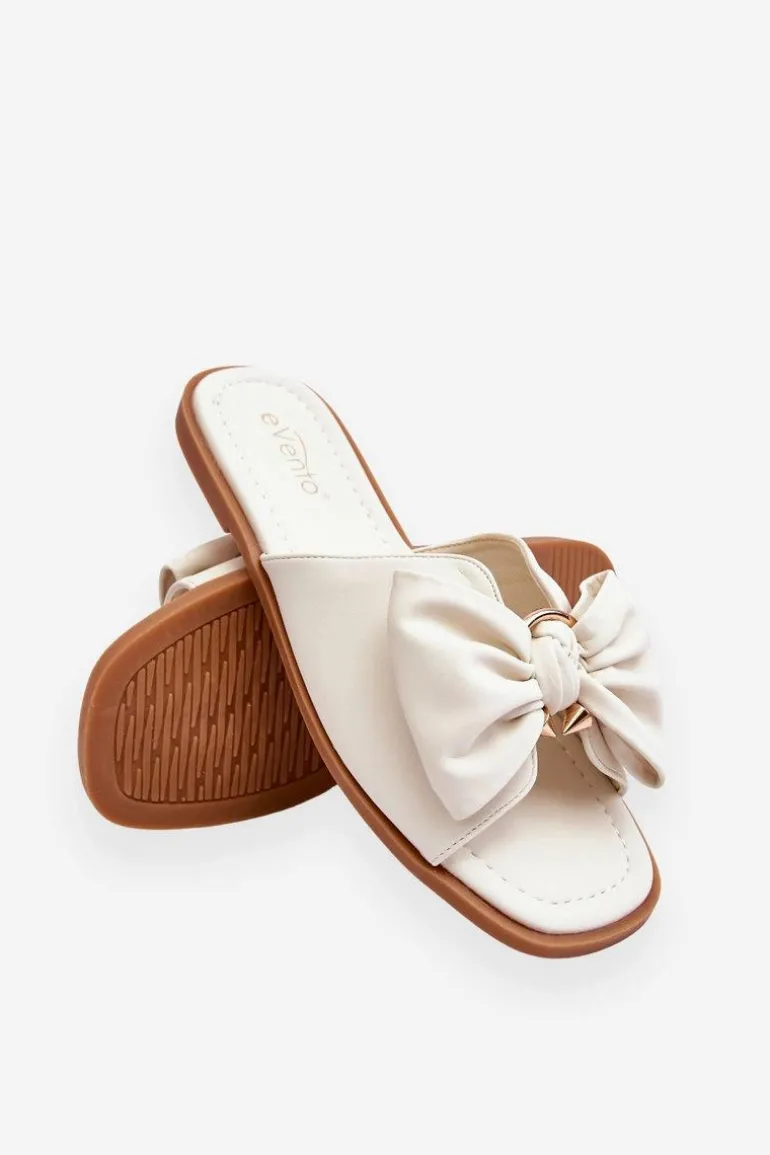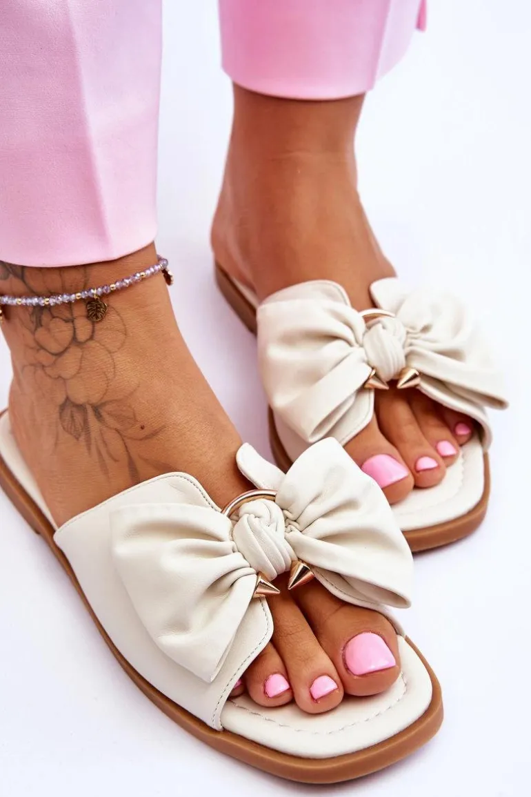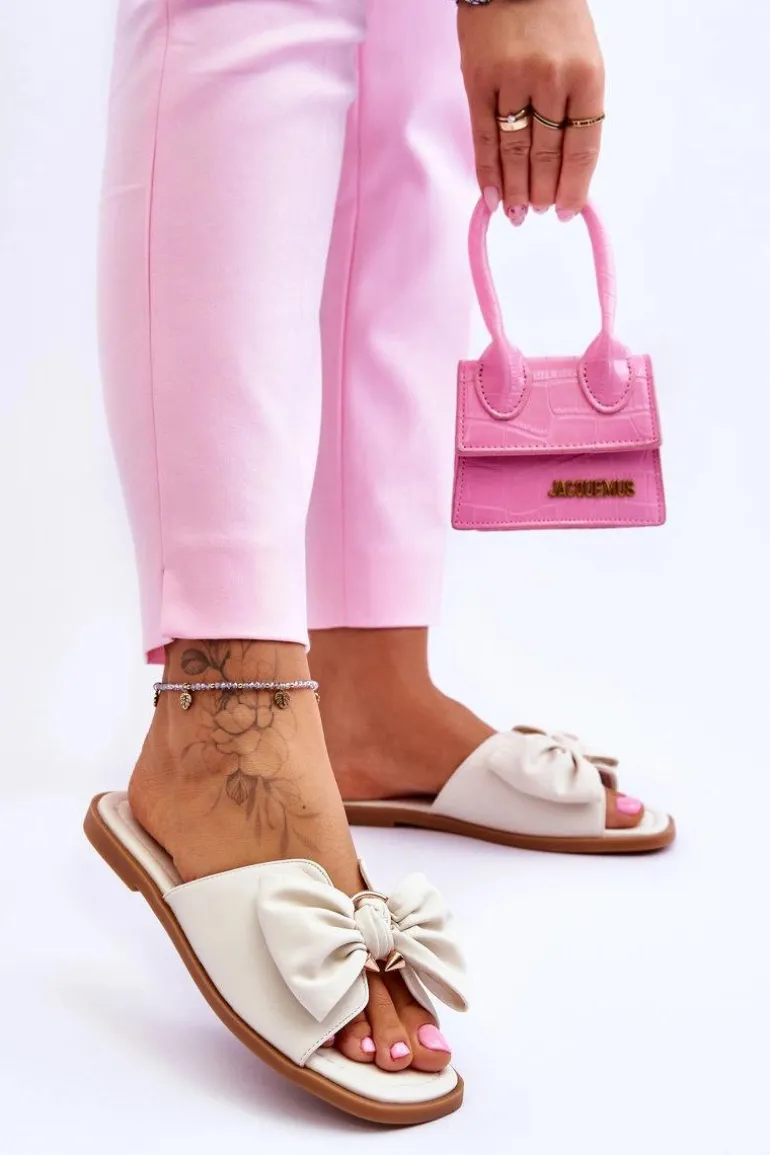 Damskie klapki o klasycznym fasonie. Wykonane z eko skóry. Modna kokarda z ozdobą na przodzie sprawia, że klapki wyglądają niesamowicie! Miękka wkładka jest wygodna w użytkowaniu i została także wykonana z eko skóry. Nosek odkryty, kwadratowy. Klapki zostały osadzone na płaskim obcasie. Modne i komfortowe w użytkowaniu — po prostu musisz je mieć. Przy wyborze rozmiaru prosimy sugerować się tabelą rozmiarów.