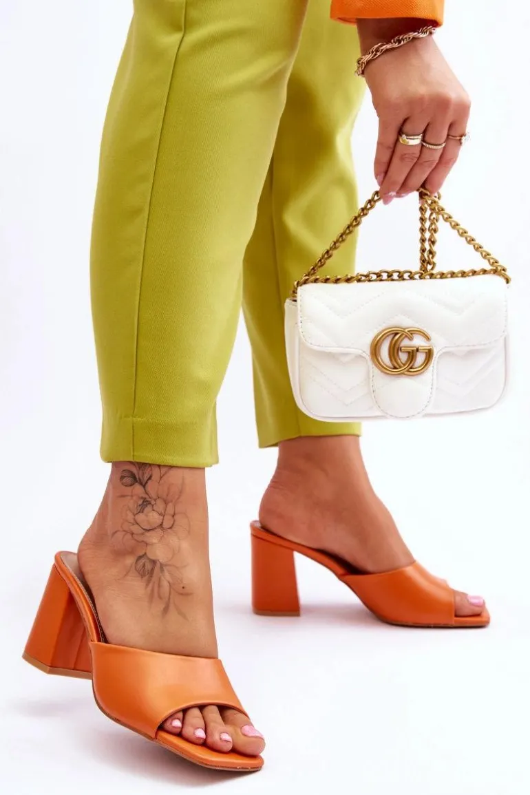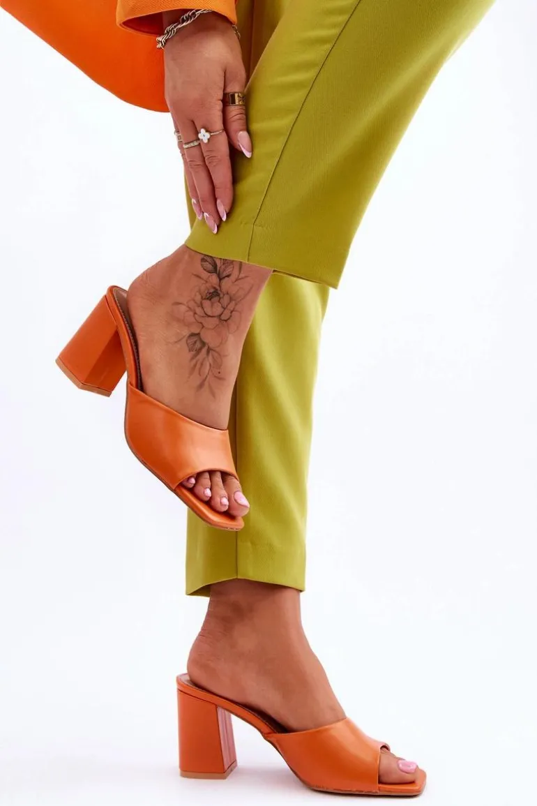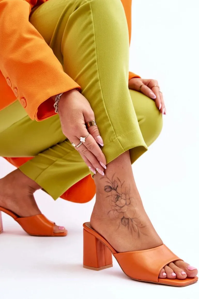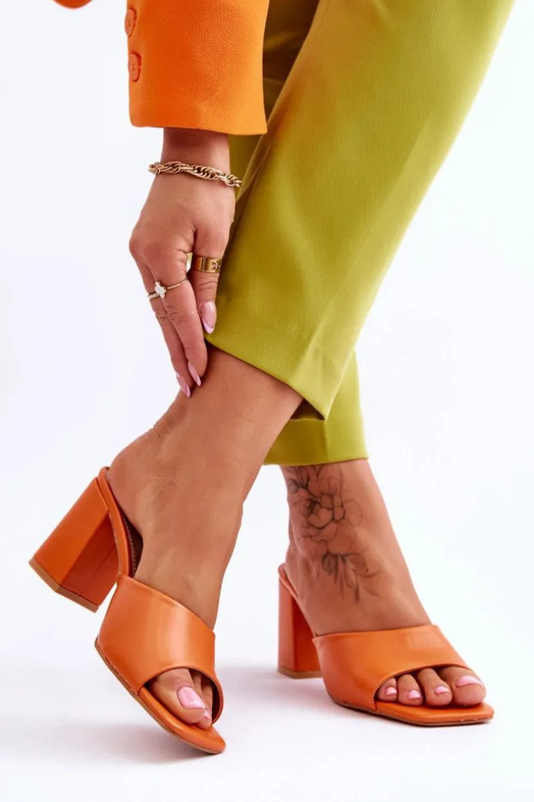 Damskie Skórzane Klasyczne Klapki Pomarańczowe Loara