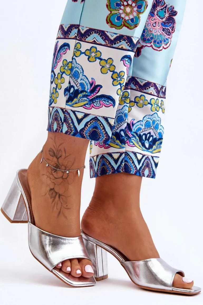 Damskie klapki o klasycznym fasonie. Model ten został wykonany z eko skóry. Klapki posiadają otwarty, kwadratowy nosek. Wkładka jest wygodna i wykonana z eko skóry. Klapki osadzono na obcasie w postaci słupka. Idealne do wielu stylizacji w upalne dni! Przy wyborze rozmiaru prosimy sugerować się tabelą rozmiarów.
