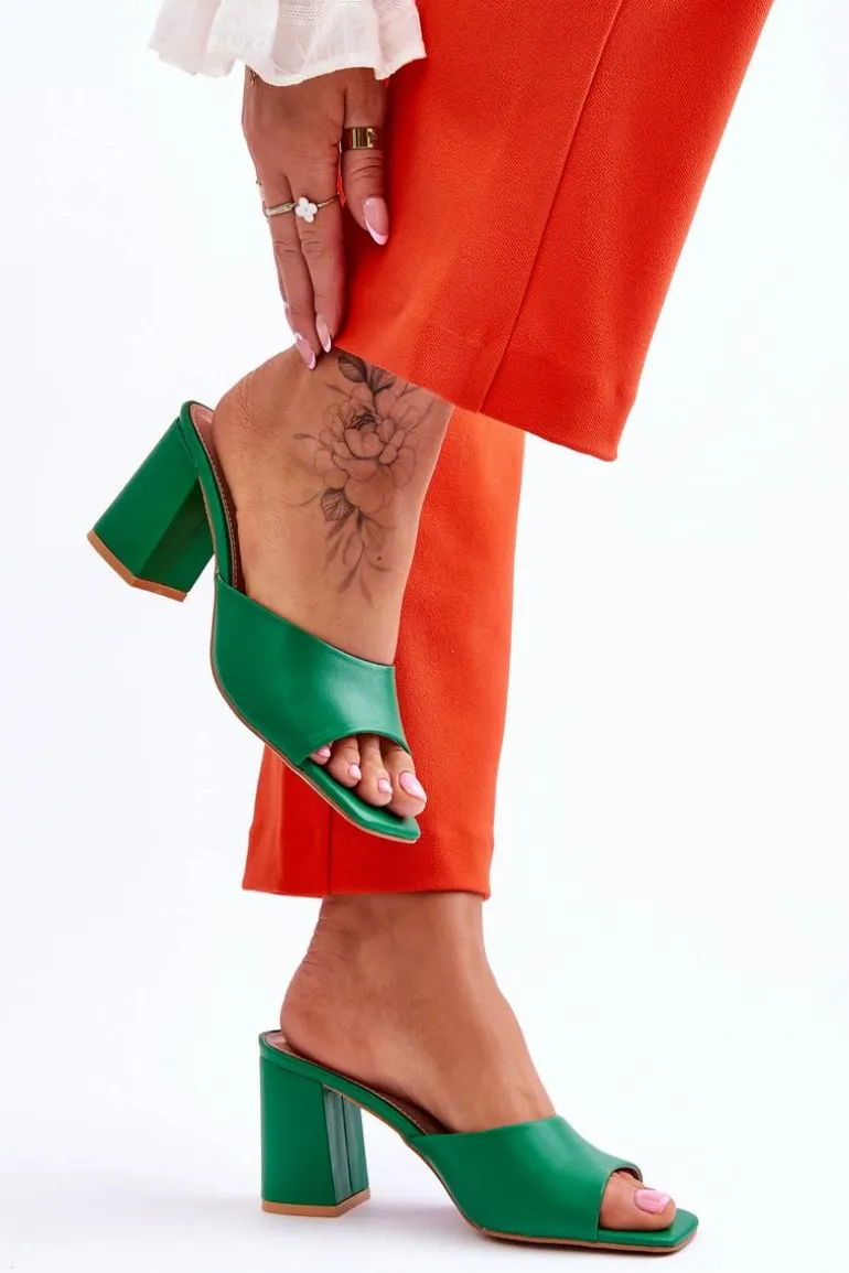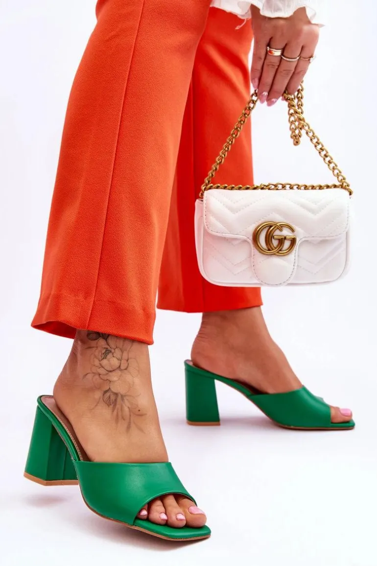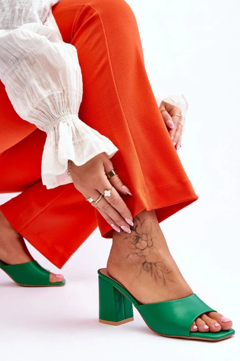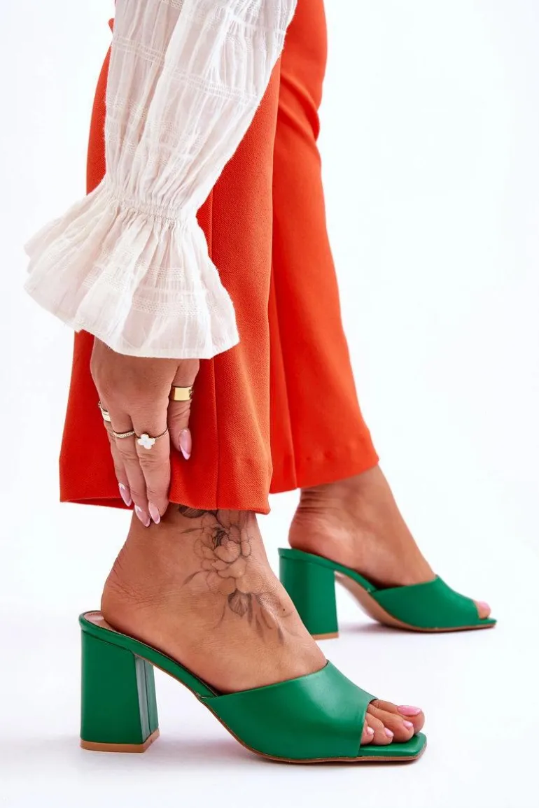 Damskie Skórzane Klasyczne Klapki Zielone Loara