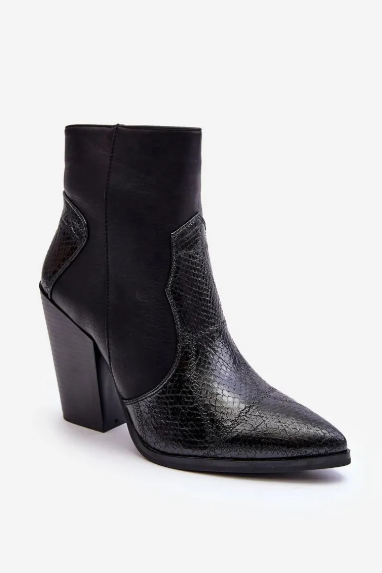 Damskie Skórzane Kowbojki Botki Czarne Fiorene