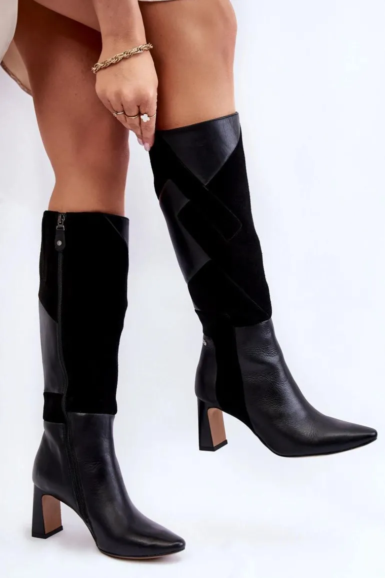 Wyjątkowe, damskie kozaki marki Maciejka zostały wykonane z połączenia wysokiej jakości naturalnych skór. Osadzone na obcasie w postaci płaskiego słupka. Kozaki posiadają zamek błyskawiczny z boku cholewki. Dodatkowo zapiętek jest usztywniany. Nosek w szpic optycznie wysmukli nogi. Wewnątrz kozaki zostały ocieplone miękkim kocem obuwniczym. Przy wyborze rozmiaru prosimy sugerować się tabelą rozmiarów.