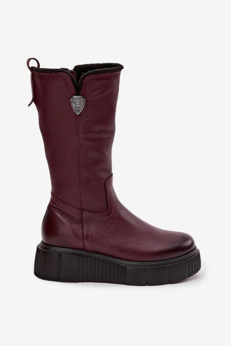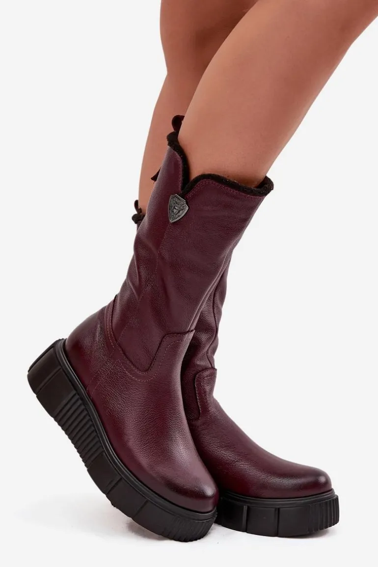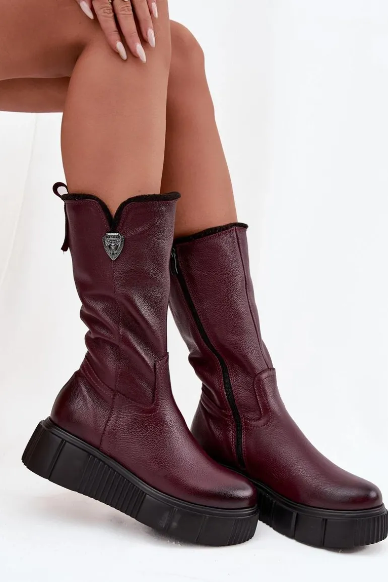 Damskie kozaki zostały wykonane z naturalnej skóry. Model ten posiada suwak z boku cholewki. Wnętrze zostało ocieplone naturalną wełną. Zapiętek jest usztywniany. Kozaki osadzono na masywnej platformie oraz koturnie. Posiadają ozdobny element z boku cholewki. Ten model świetnie sprawdzi się podczas chłodnych, zimowych dni. Przy wyborze rozmiaru prosimy sugerować się tabelą rozmiarów.