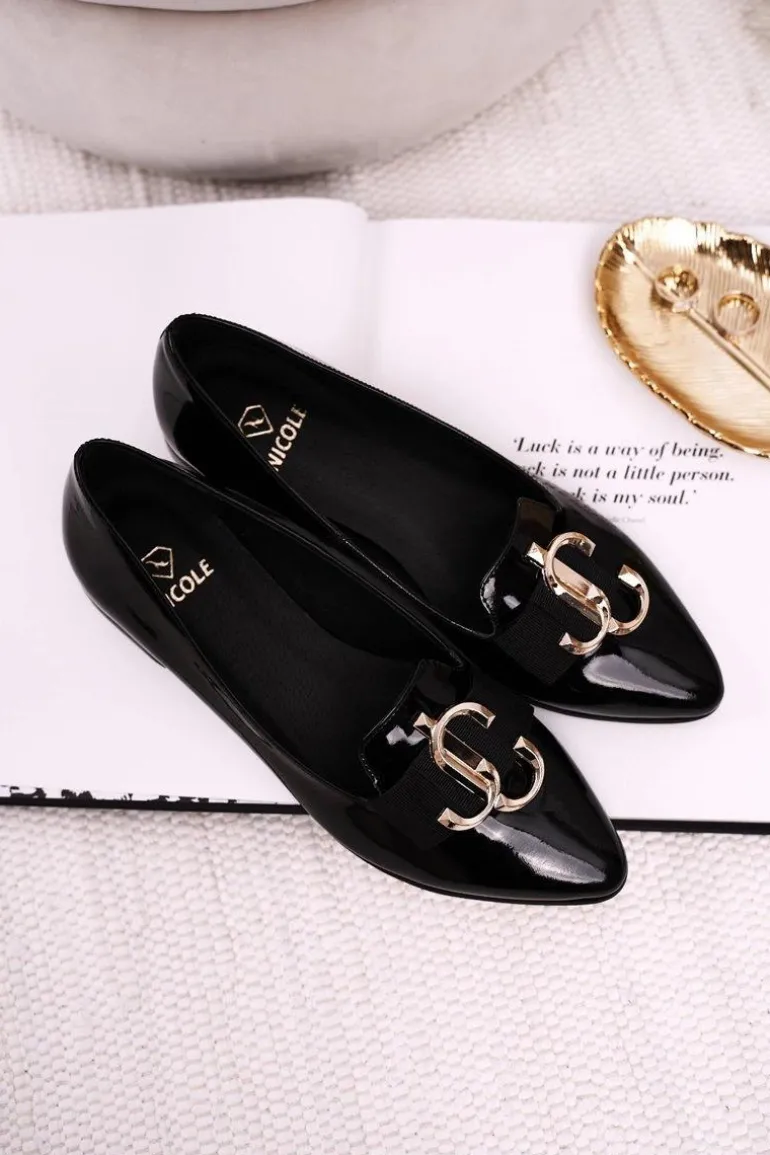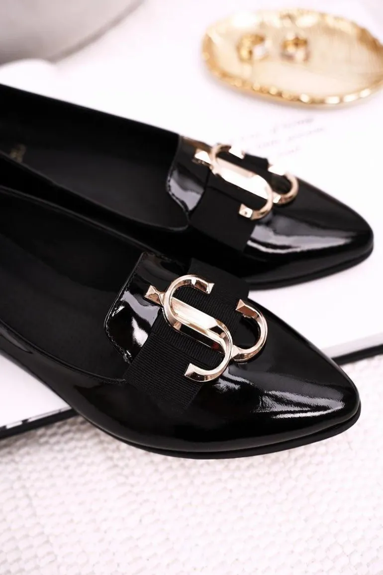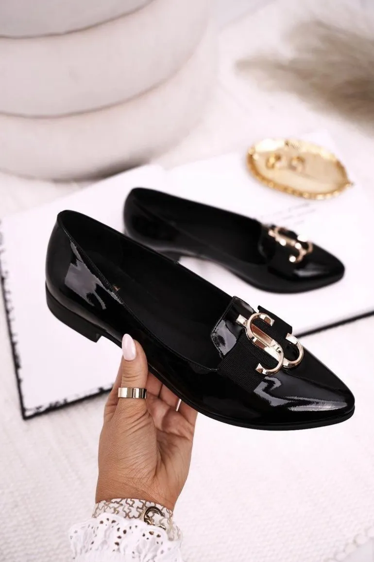 Damskie Skórzane Mokasyny Baleriny Lakierowane Czarne Mary-Jane