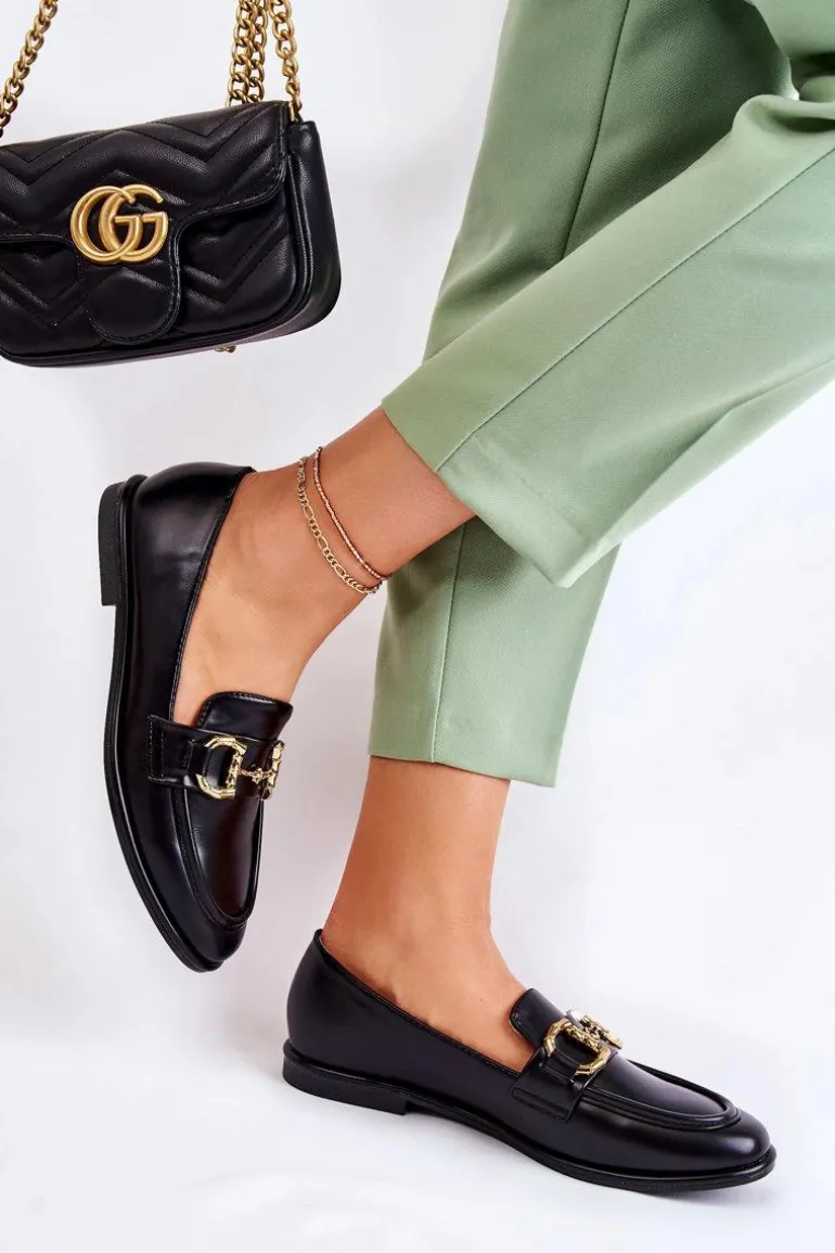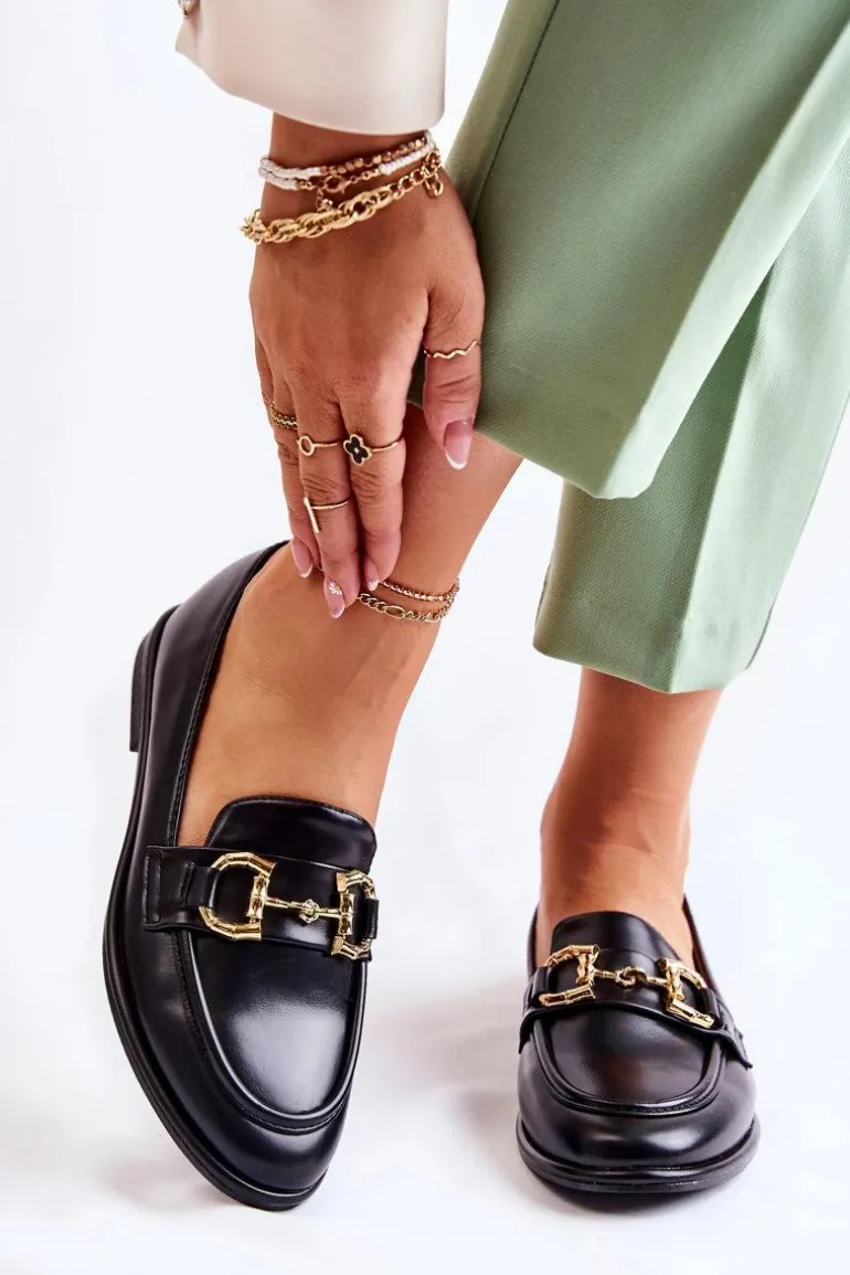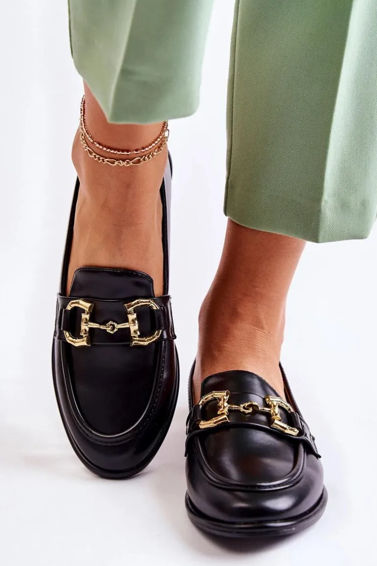 Modne mokasyny damskie świetnie sprawdzą się w sezonie wiosenno-letnim! Model ten wykorzystasz w wielu sytuacjach – do pracy, na spotkanie z przyjaciółmi czy na spacer. Miękka wkładka z eko skóry zadba o Twój komfort podczas użytkowania. Na przodzie znajduje się ozdobny element wykonany z tworzywa sztucznego. Nosek zaokrąglony. Buty osadzone na płaskim obcasie. Przy wyborze rozmiaru prosimy sugerować się tabelą rozmiarów.