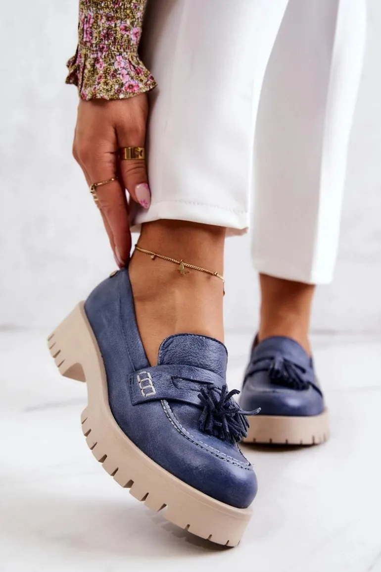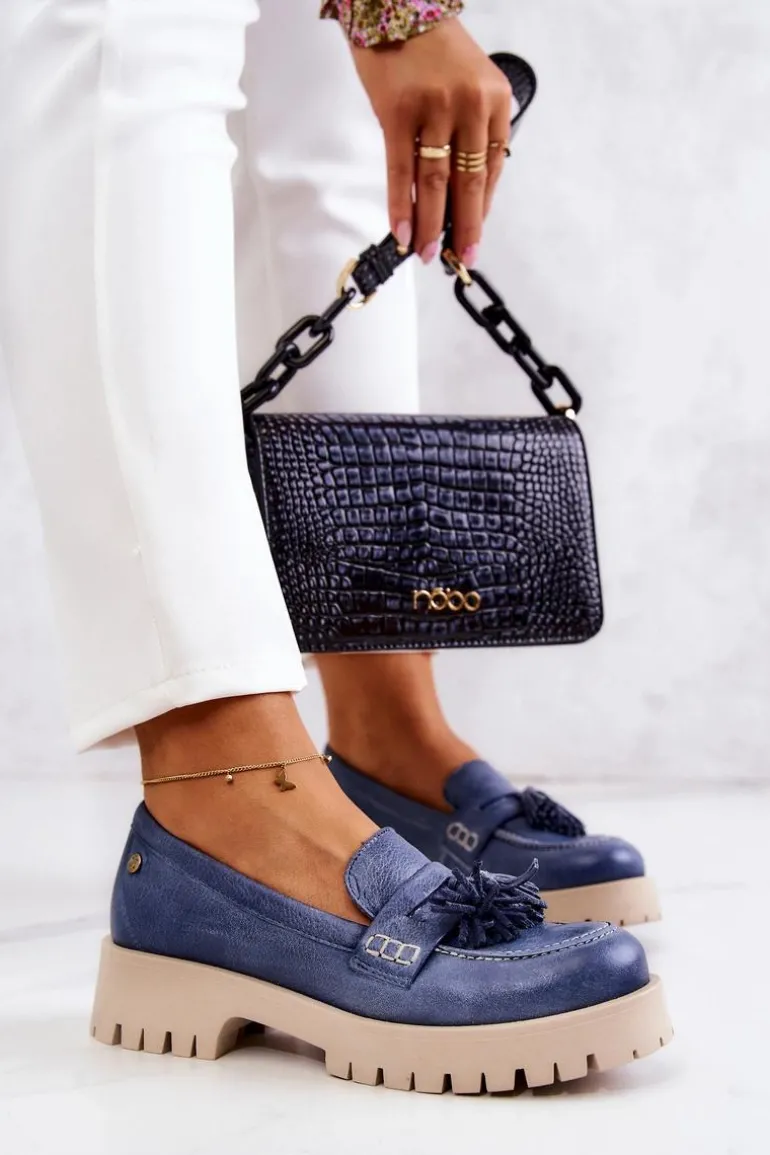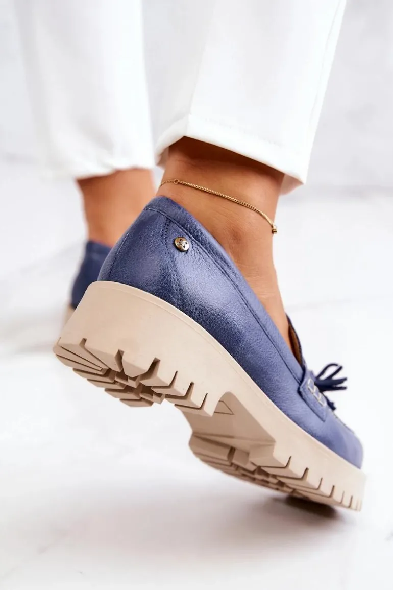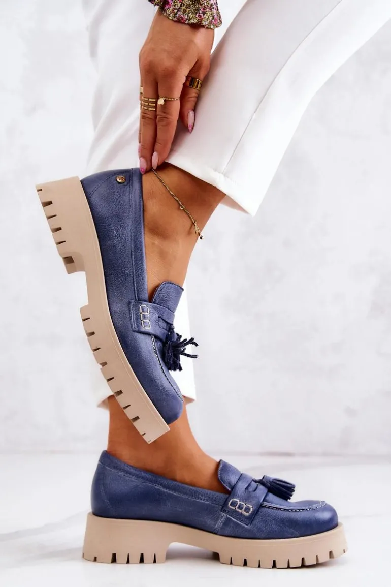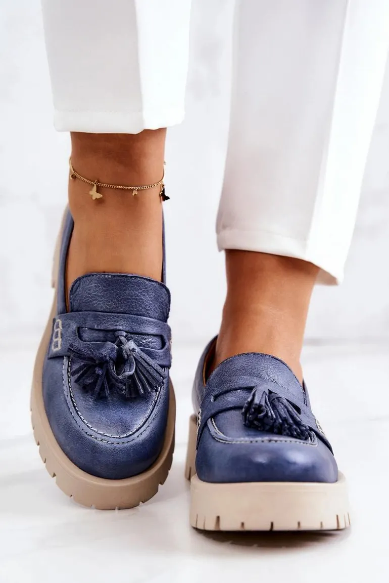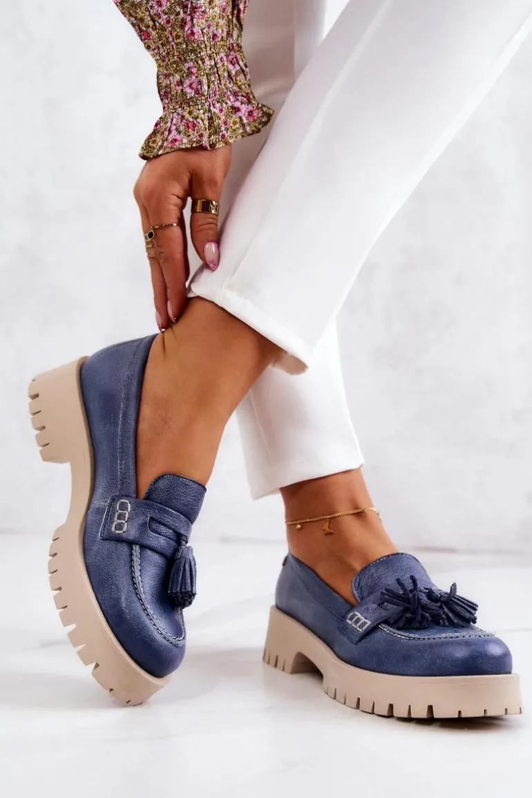 Półbuty firmy Maciejka w fasonie loaferów! Idealne na sezon wiosenno-jesienny. Dopasujesz je do wielu stylizacji. Zostały wykonane z wysokiej jakości naturalnej skóry. Posiadają ozdobne frędzelki na przodzie. Stabilny, płaski obcas z traperową podeszwą świetnie sprawdzi się na co dzień! Miękka, delikatnie perforowana wkładka zapewni komfort w użytkowaniu. Idealne buty do pracy, szkoły czy na weekendowe spotkanie ze znajomymi.Przy wyborze rozmiaru prosimy sugerować się tabelą rozmiarów.