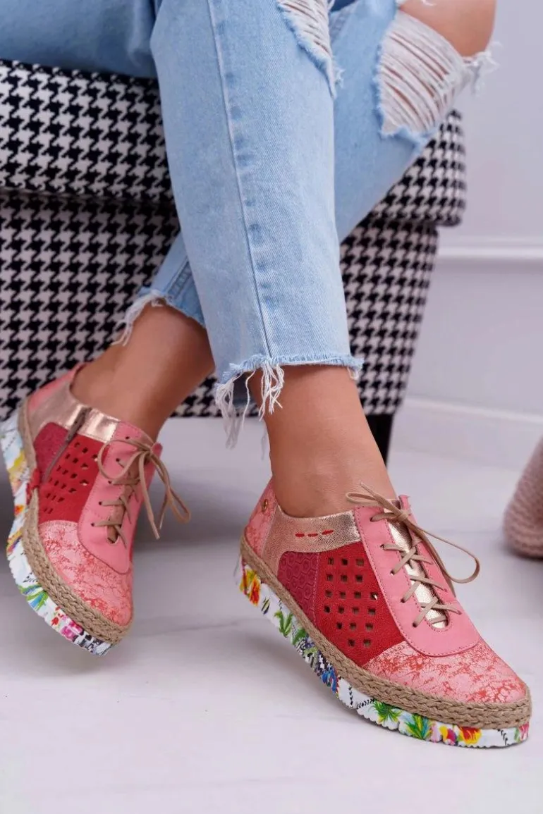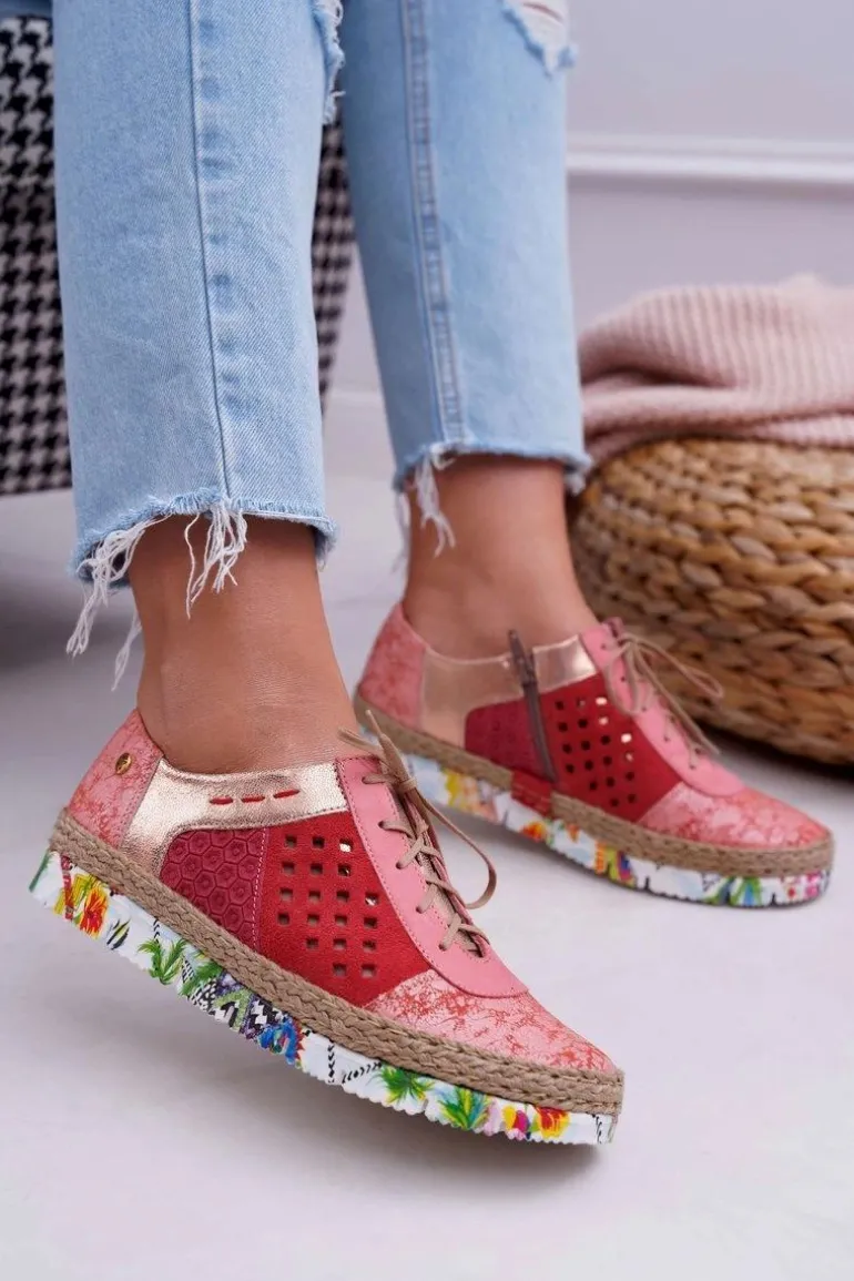Damskie Skórzane Półbuty Maciejka Koralowe 03339-18