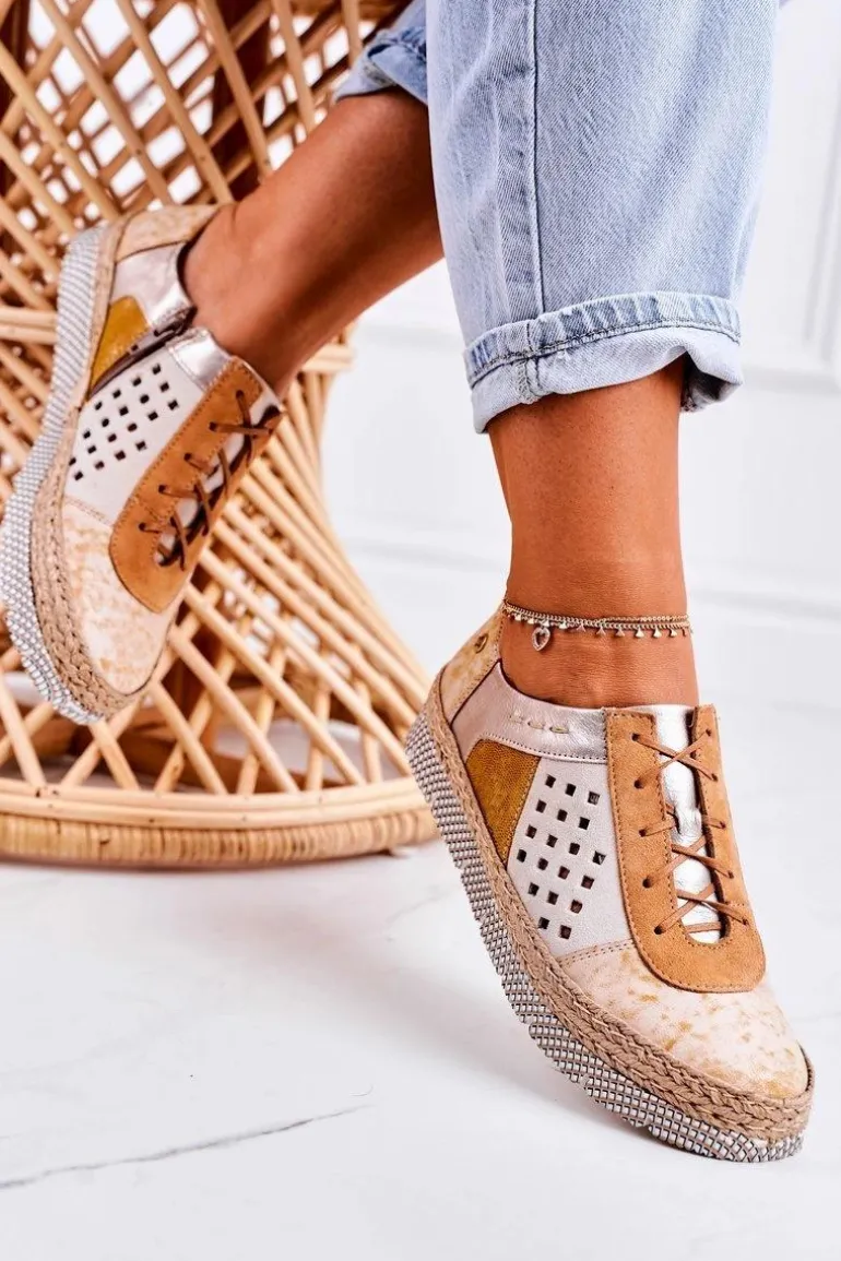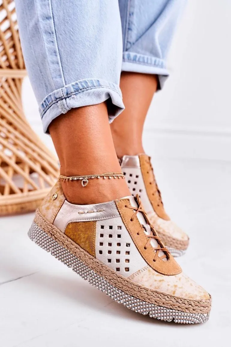 Damskie Skórzane Półbuty Maciejka Żółte 03339-44