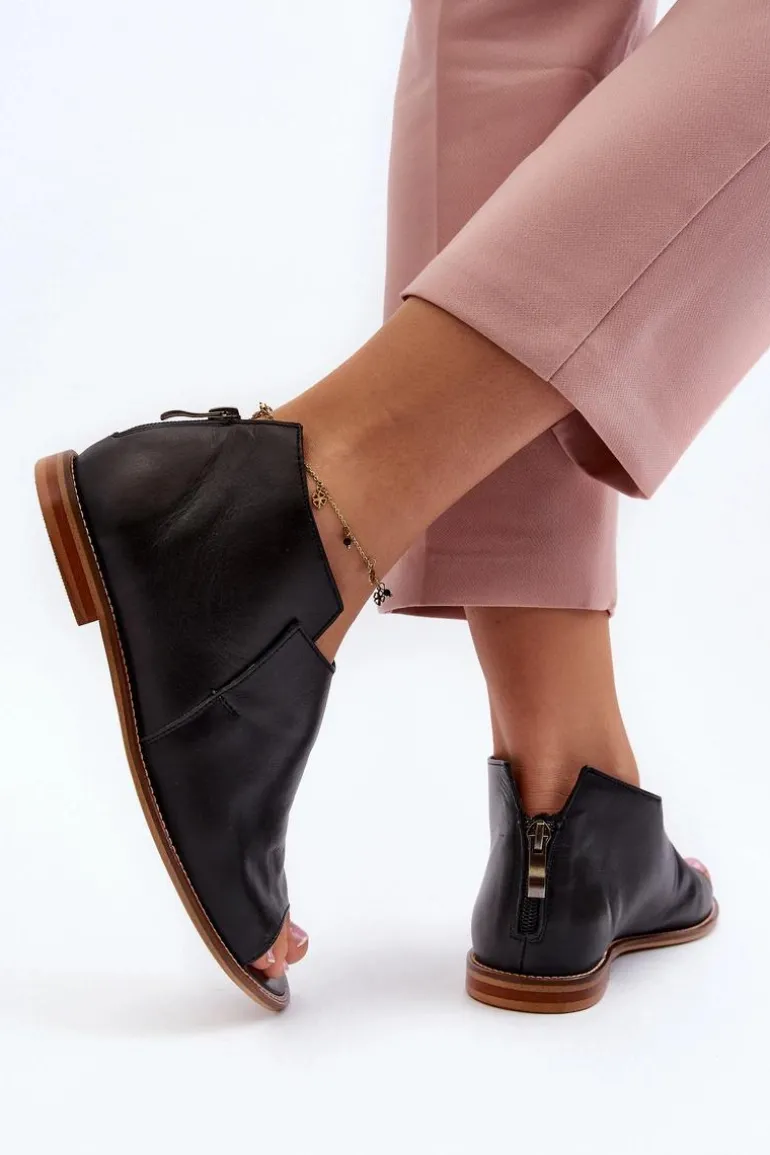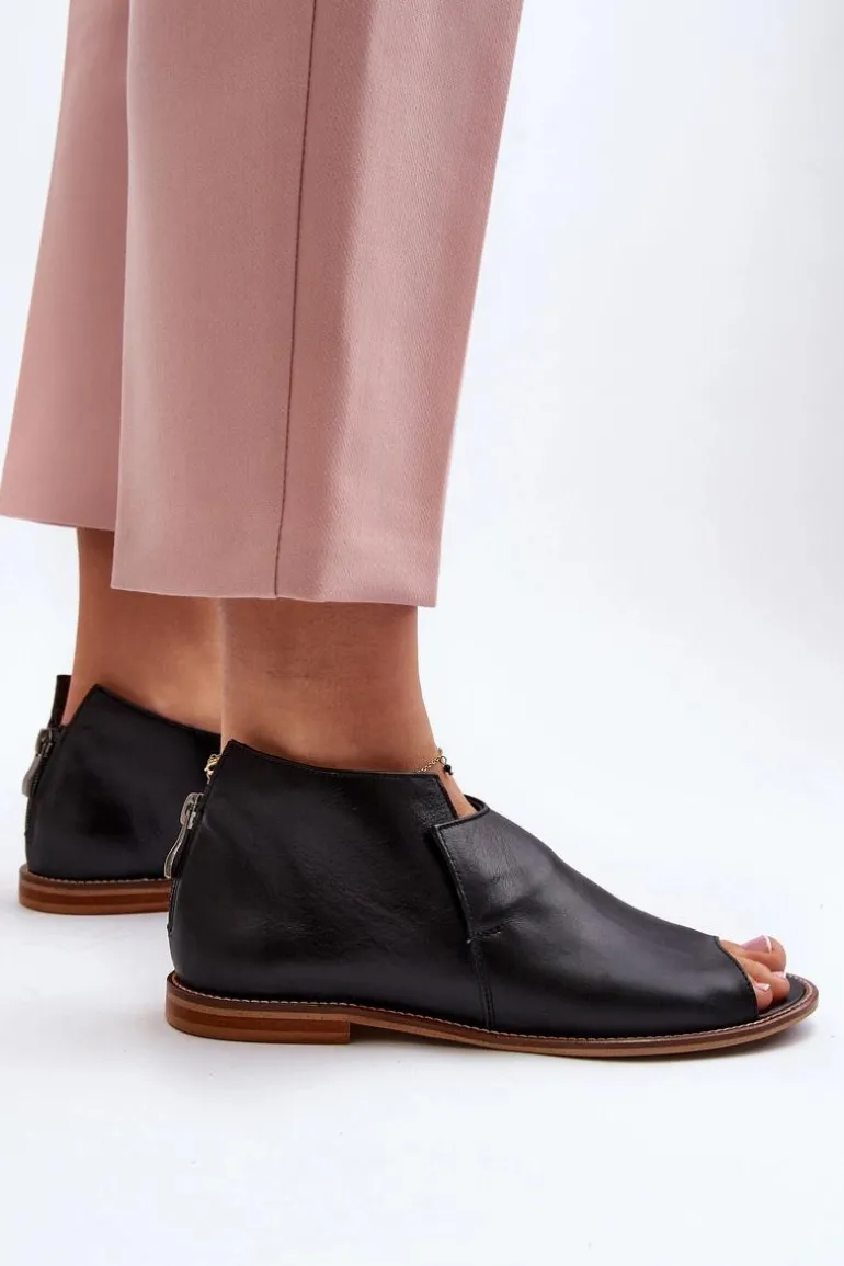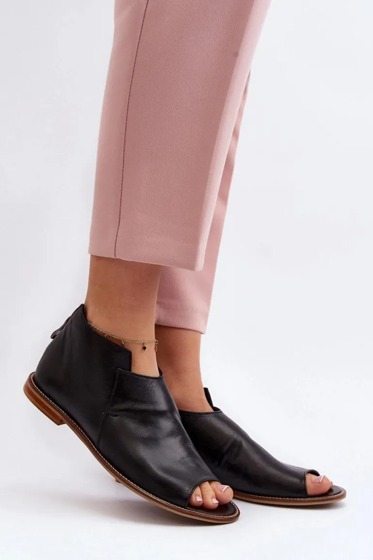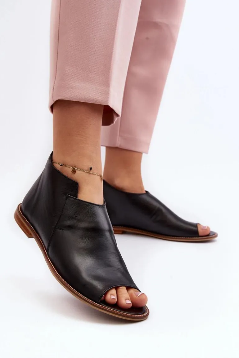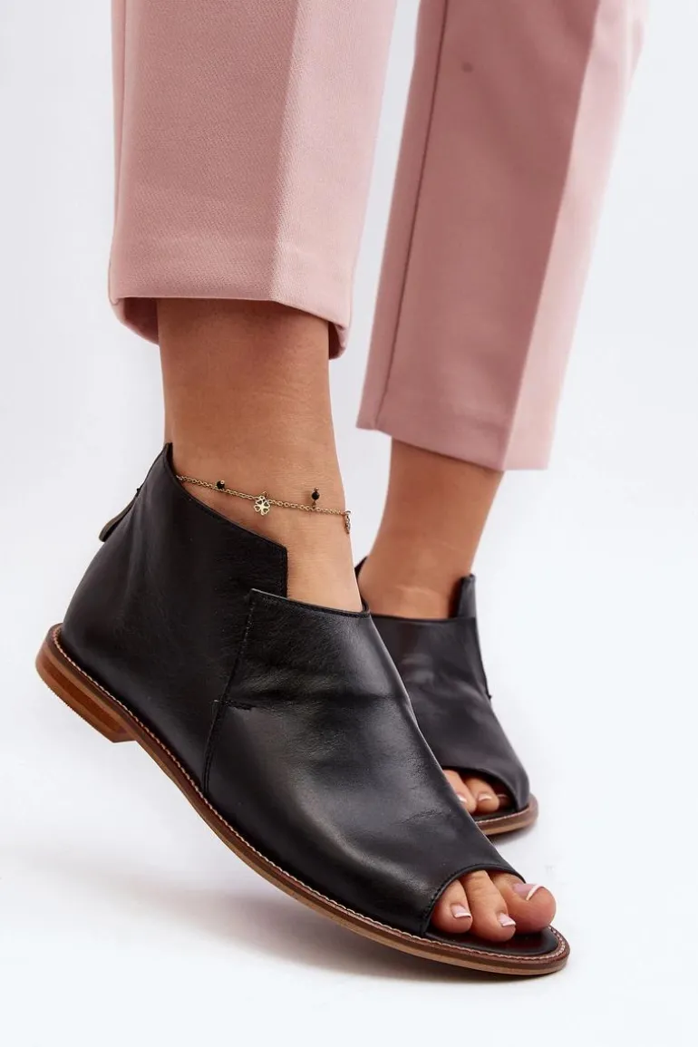 Damskie Skórzane Sandały Laura Messi 2443 Czarne