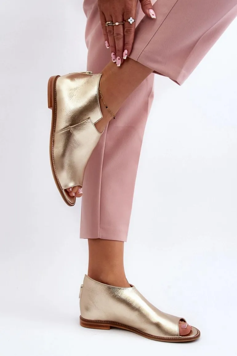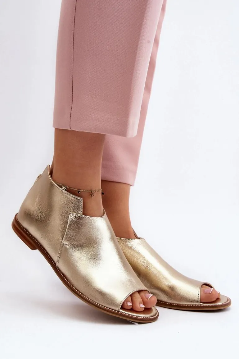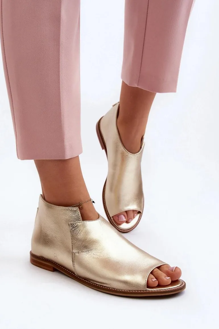 Eleganckie sandały marki Laura Messi. Buty wykonane są ze skóry naturalnej z dbałością o każdy detal. Osadzone na płaskim obcasie. Model z zakrytą piętą. Z tyłu suwak. Skózana wkładka zapewni wygodę podczas użytkowania. Ten niezwykle stylowy fason koniecznie musi znaleźć się w Twojej letniej garderobie! Przy wyborze rozmiaru prosimy sugerować się tabelą rozmiarów.