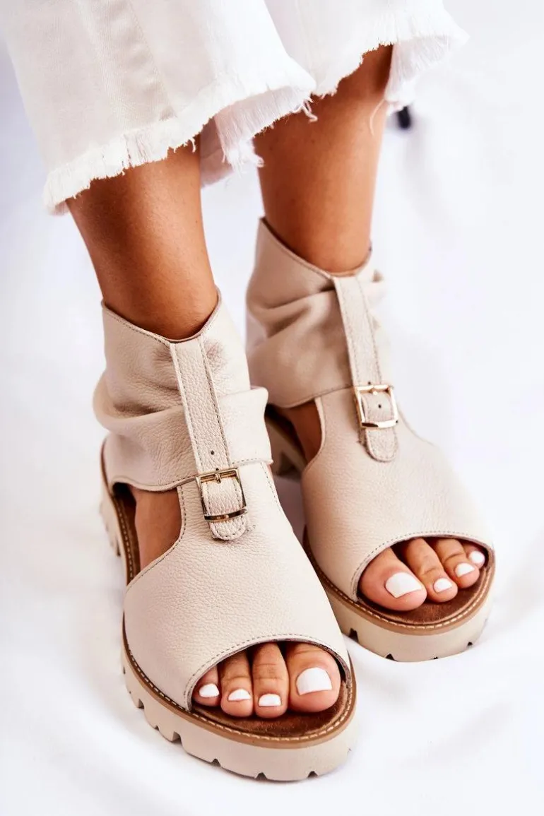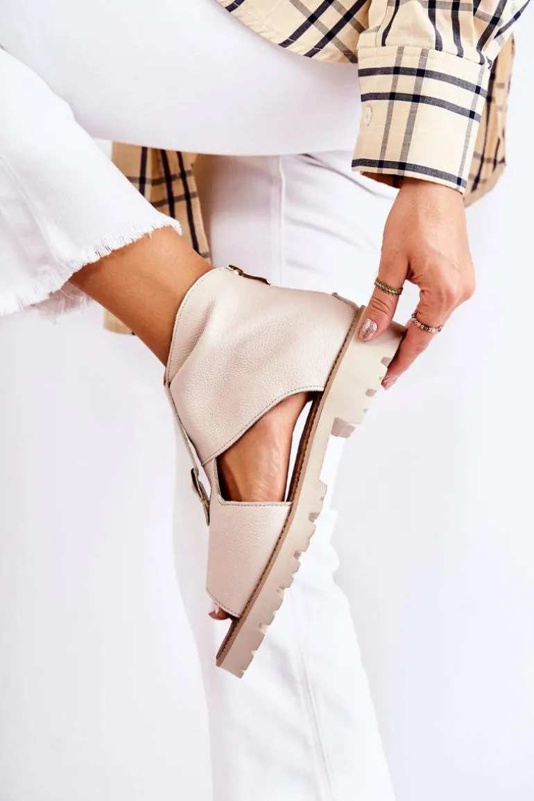 Damskie Skórzane Sandały Na Suwak Nicole 2748 Beżowe