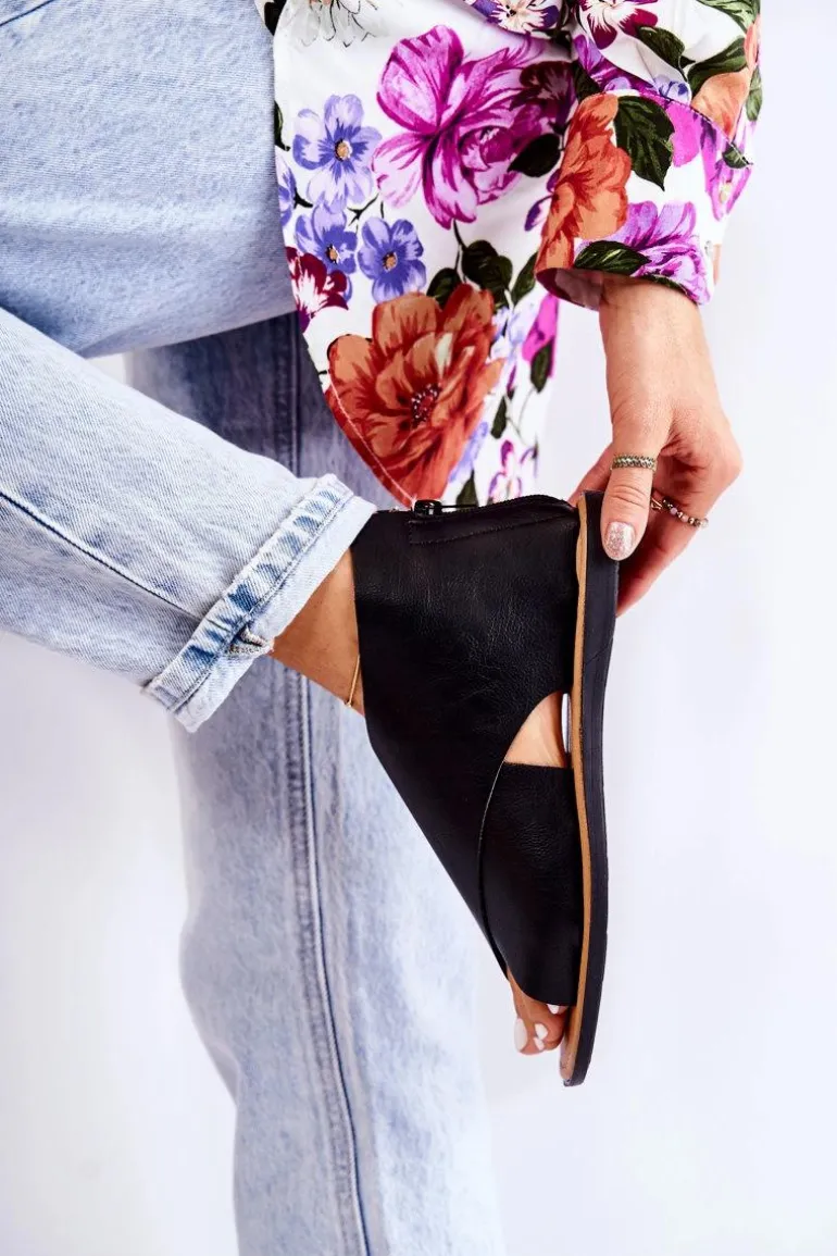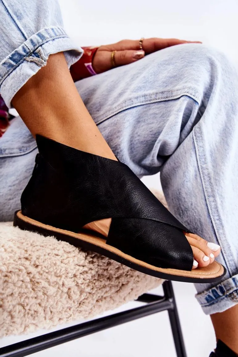 Damskie Skórzane Sandały Na Szeroką Stopę Czarne Catalise