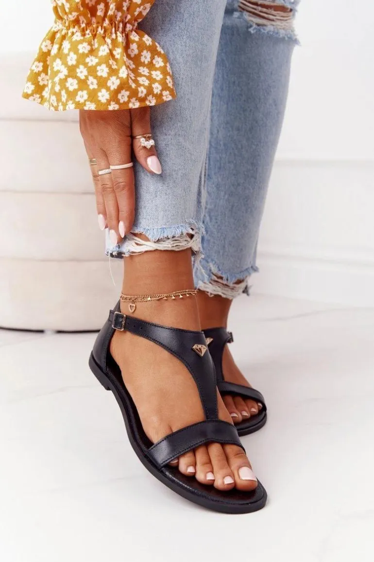 Damskie Skórzane Sandały Nicole 2648 Czarne