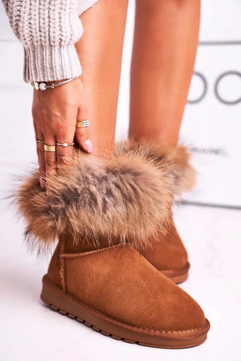 Śniegowce to idealny wybór na chłodne dni. Buty wykonane są z naturalnej skóry zamszowej. Futerko wokół kostki jest naturalne natomiast wnętrze zostało ocieplone grubym eko futerkiem. Koniecznie sprawdź całą naszą kolekcję śniegowców! Przy wyborze rozmiaru prosimy kierować tabelą rozmiarów.