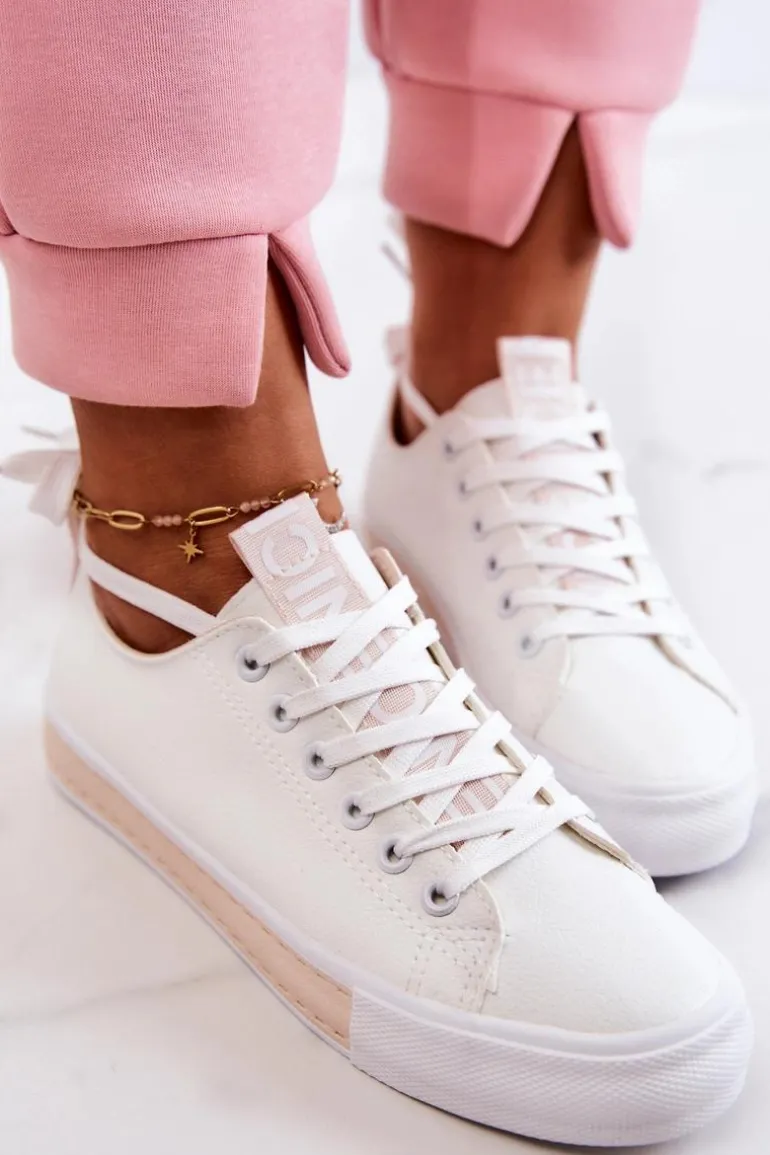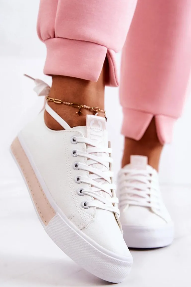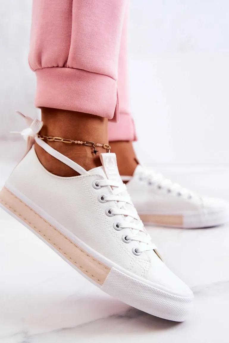 Damskie tenisówki wykonane z eko skóry. Klasyczna model pasuje do wielu stylizacji zarówno do spodni, jak i sukienek czy dłuższych spódnic. Buty dobrze dopasowują się do kształtu stopy. Posiadają miękką, materiałową wkładkę. Model klasycznie wiązany. Buty posiadają antypoślizgową podeszwę. Przy wyborze rozmiaru prosimy sugerować się tabelą rozmiarów.