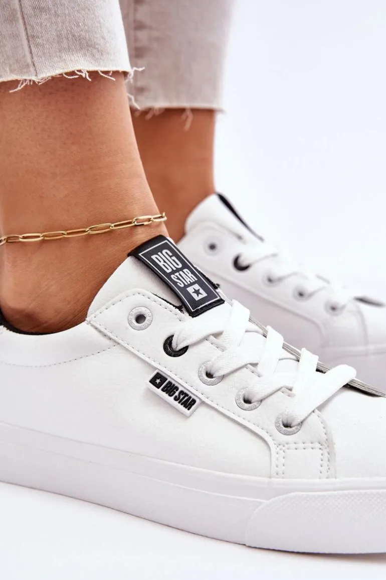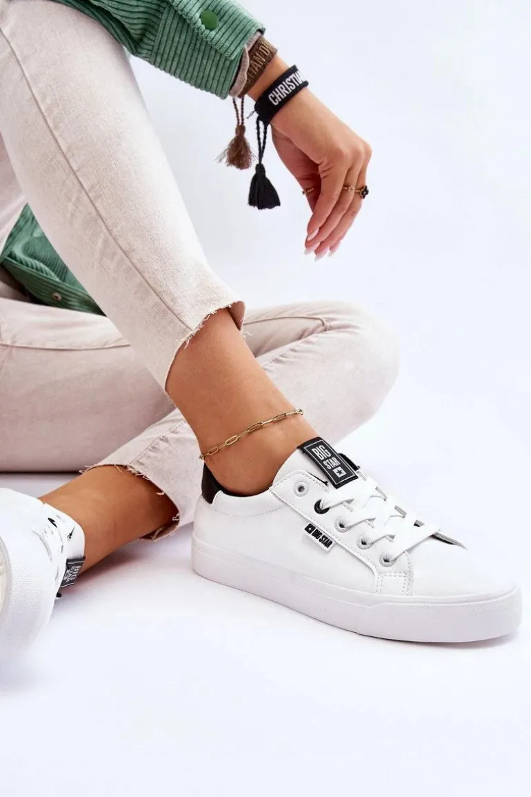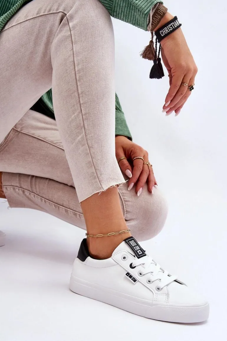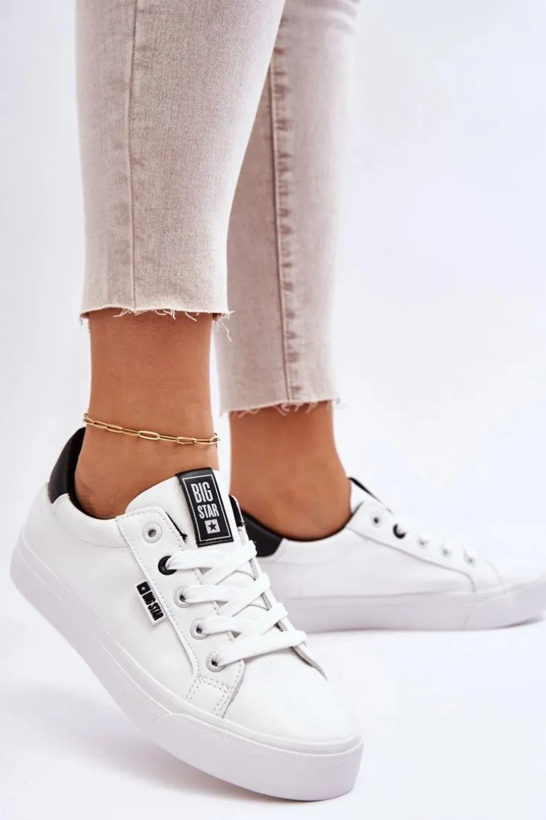 Tenisówki damskie od polskiej marki BIG STAR. Buty wykonane są z wysokiej jakości skóry ekologiczne, dobrze dopasowują się do kształtu stopy. Przy wyborze rozmiaru prosimy sugerować się tabelą rozmiarów.