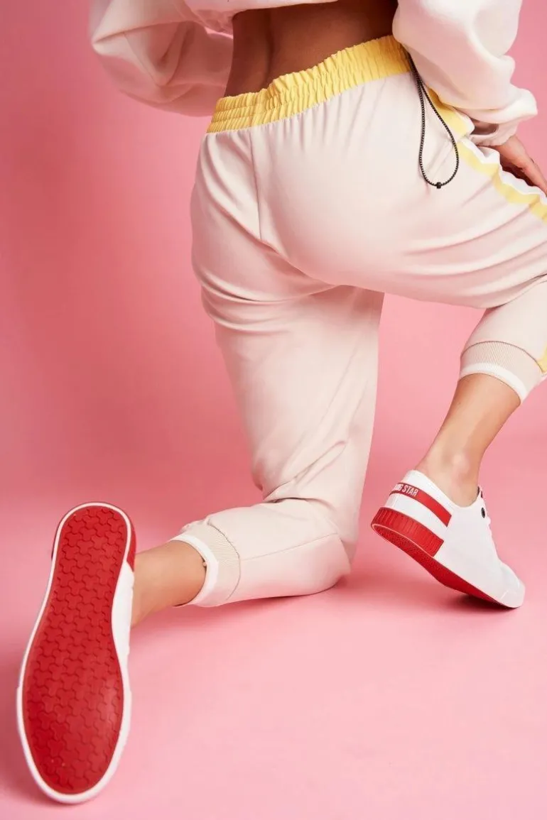 Damskie Skórzane Tenisówki BIG STAR FF274174 Biało Czerwone