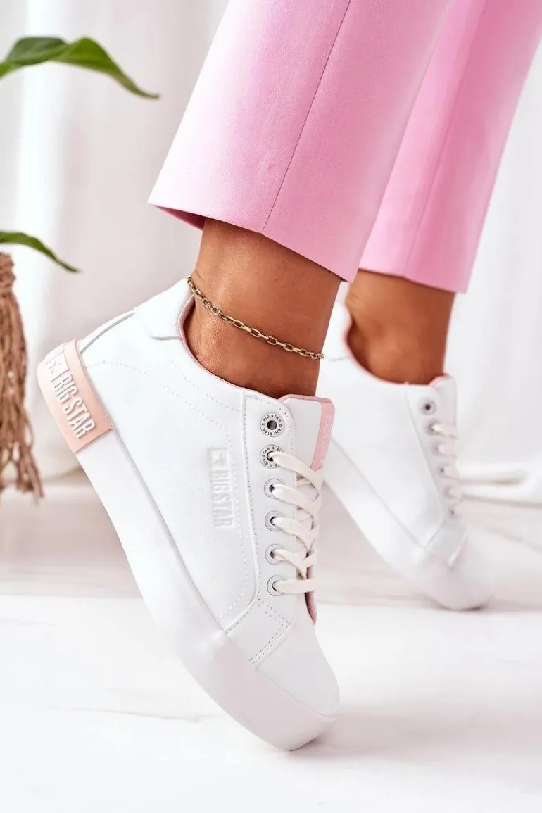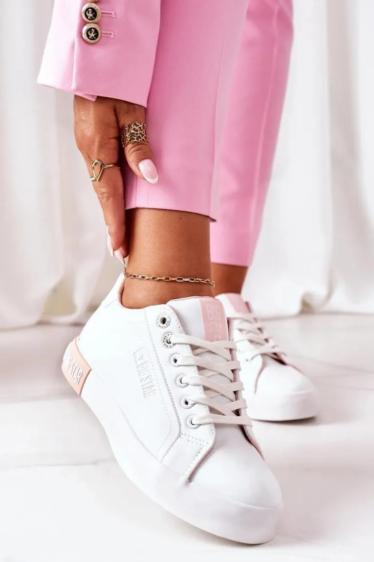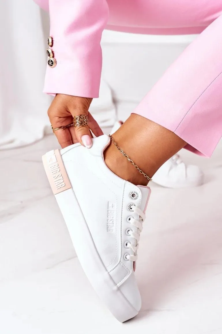 Damskie tenisówki polskiej marki BIG STAR. Klasyczna forma pasuje do wielu stylizacji. Buty dobrze dopasowują się do kształtu stopy, posiadają miękką, materiałową wkładkę. Wykonane są z wysokiej jakości eko skóry. Koniecznie sprawdź całą naszą kolekcję butów BIG STAR. Przy wyborze rozmiaru prosimy sugerować się tabelą rozmiarów.