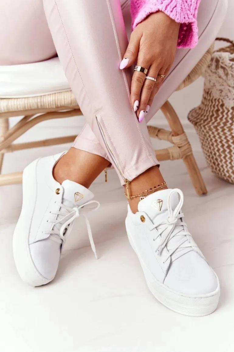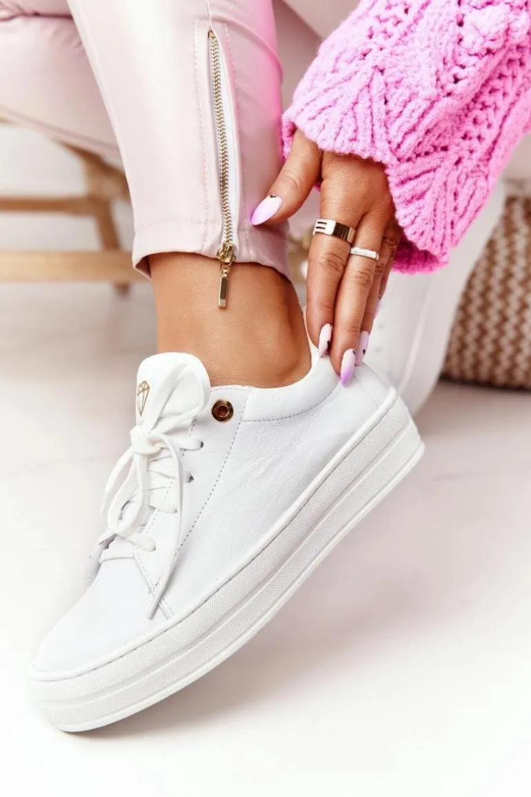 Damskie tenisówki na platformie marki Nicole. Buty wykonane są ze skóry naturalnej. Klasyczna forma pasuje do wielu stylizacji. Buty dobrze dopasowują się do kształtu stopy, posiadają miękką wkładkę ze skóry naturalnej. Koniecznie sprawdź całą naszą kolekcję damskich trampek! Przy wyborze rozmiaru prosimy sugerować się tabelą rozmiarów.