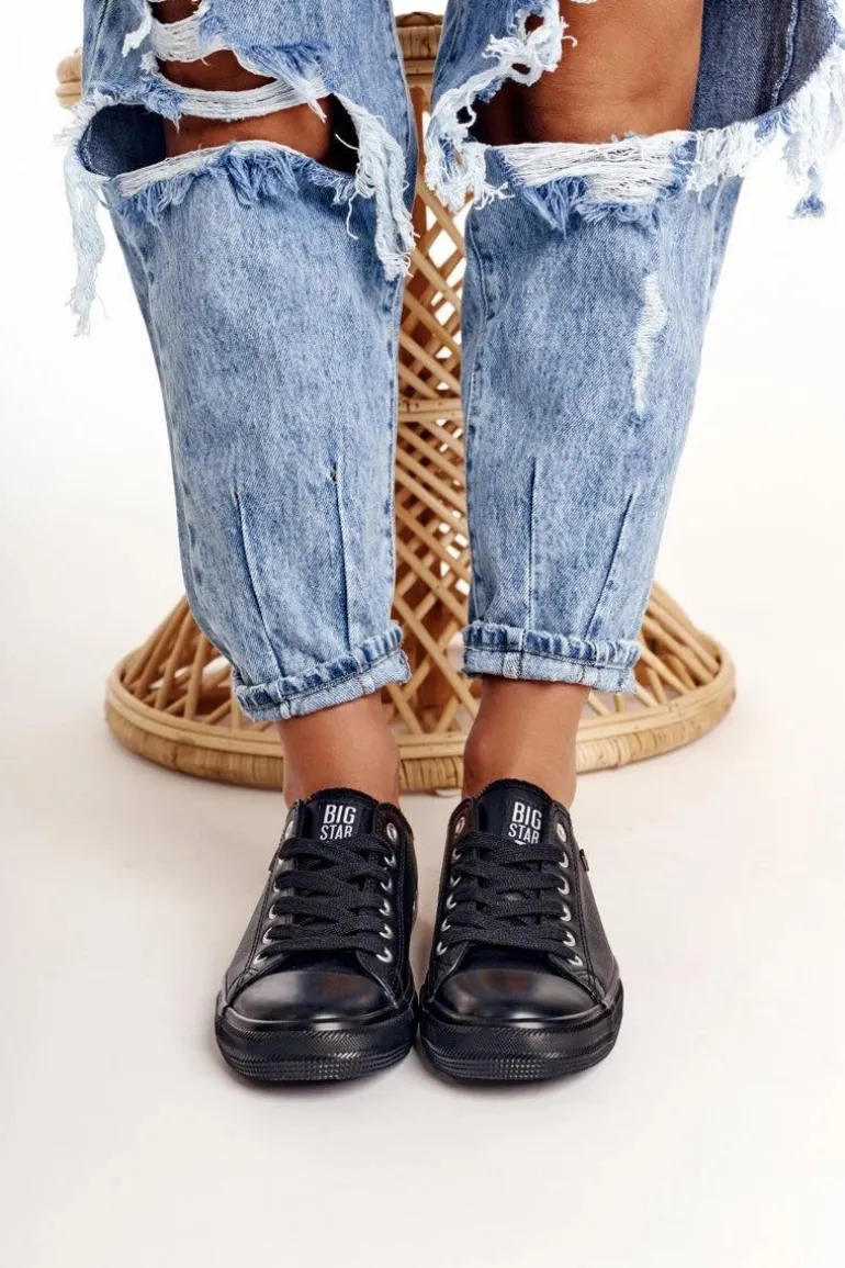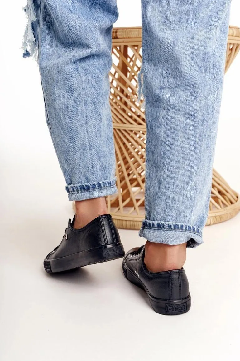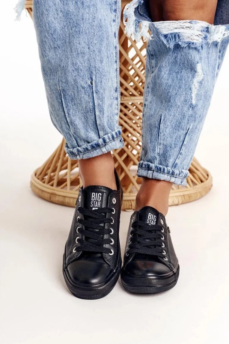 Damskie trampki polskiej marki BIG STAR. Klasyczna forma pasuje do wielu stylizacji. Buty dobrze dopasowują się do kształtu stopy, posiadają miękką, materiałową wkładkę oraz antypoślizgową podeszwę. Wykonane są z wysokiej jakości eko skóry. Koniecznie sprawdź całą naszą kolekcję butów BIG STAR. Przy wyborze rozmiaru prosimy sugerować się tabelą rozmiarów.