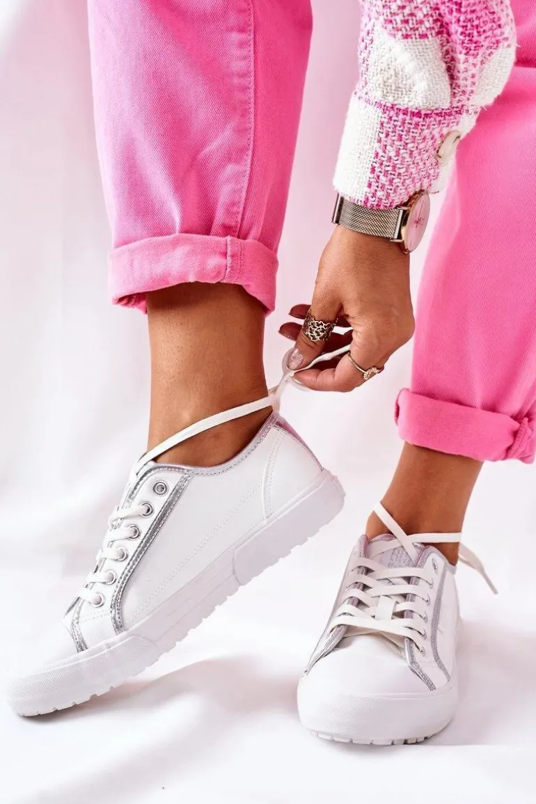 Damskie tenisówki polskiej marki BIG STAR. Klasyczna forma pasuje do wielu stylizacji. Buty dobrze dopasowują się do kształtu stopy, posiadają miękką, materiałową wkładkę. Wykonane są z wysokiej jakości eko skóry. Koniecznie sprawdź całą naszą kolekcję butów BIG STAR. Przy wyborze rozmiaru prosimy sugerować się tabelą rozmiarów.