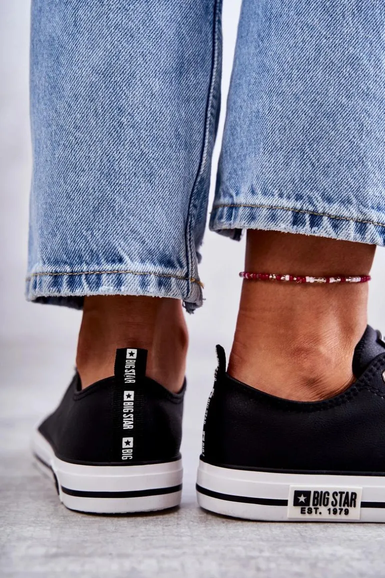Ponadczasowe trampki damskie marki Big Star zostały wykonane z eko skóry. Posiadają gumowy, wzmacniany nosek. Model charakteryzuje się logowanymi sznurowadłami. Podeszwa wraz z platformą wykonane z gumowego tworzywa, dzięki którym model ten jest antypoślizgowy. Wkładka materiałowa. Klasyczne trampki z pewnością świetnie będą prezentować się w wielu stylizacjach. Przy wyborze rozmiaru prosimy sugerować się tabelą rozmiarów.