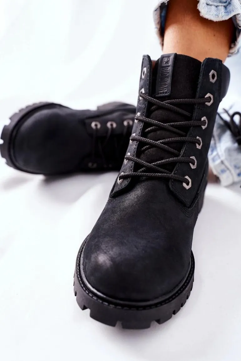 Damskie Skórzane Trapery Big Star II274446 Czarne