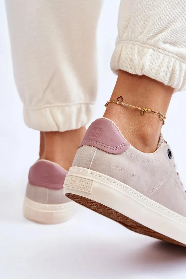 Cholewka w butach marki Big Star została wykonana z materiałów syntetycznych, które pochodzą z recyklingu. Model ten jest idealny na spacer po mieście, na spotkanie z przyjaciółmi czy zakupy. Buty posiadają miękką wkładkę z wytrzymałego i odpornego na ścieranie materiału. Podeszwa wykonana z gumowego tworzywa, antypoślizgowa. Model ten posiada usztywniany zapiętek. Przy wyborze rozmiaru prosimy sugerować się tabelą rozmiarów.