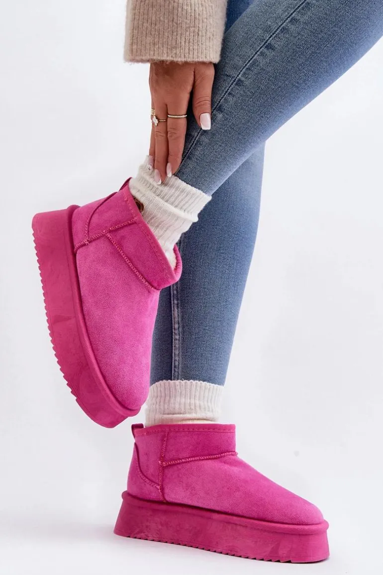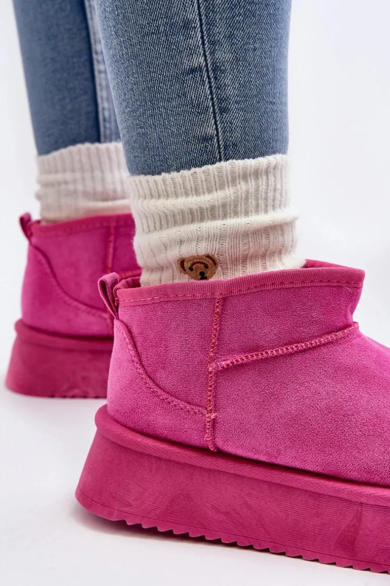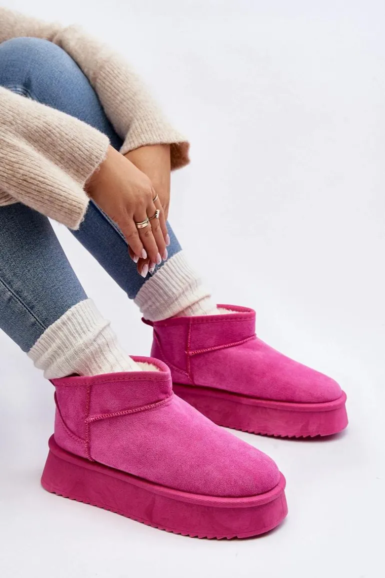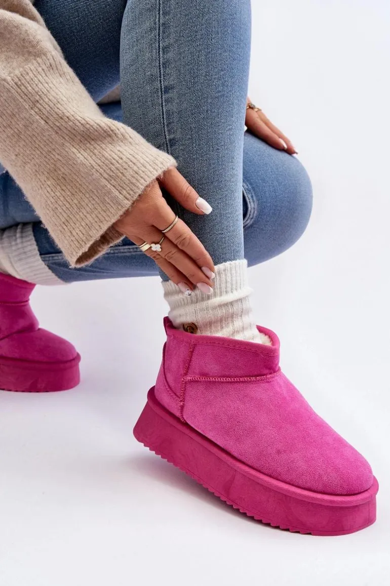 Śniegowce damskie osadzone na grubej podeszwie, która świetnie odizoluje od zimnego podłoża. Wykonane z eko zamszu. Model z niską cholewką za kostkę. Środek ocieplony grubym futerkiem. Ten modny fason dopasujesz do niemalże każdej stylizacji! Przy wyborze rozmiaru prosimy sugerować się tabelą rozmiarów.