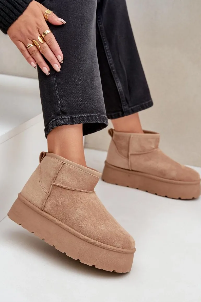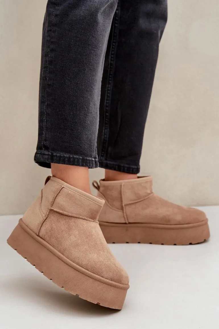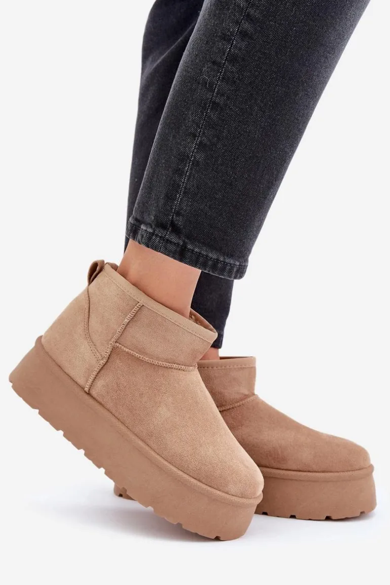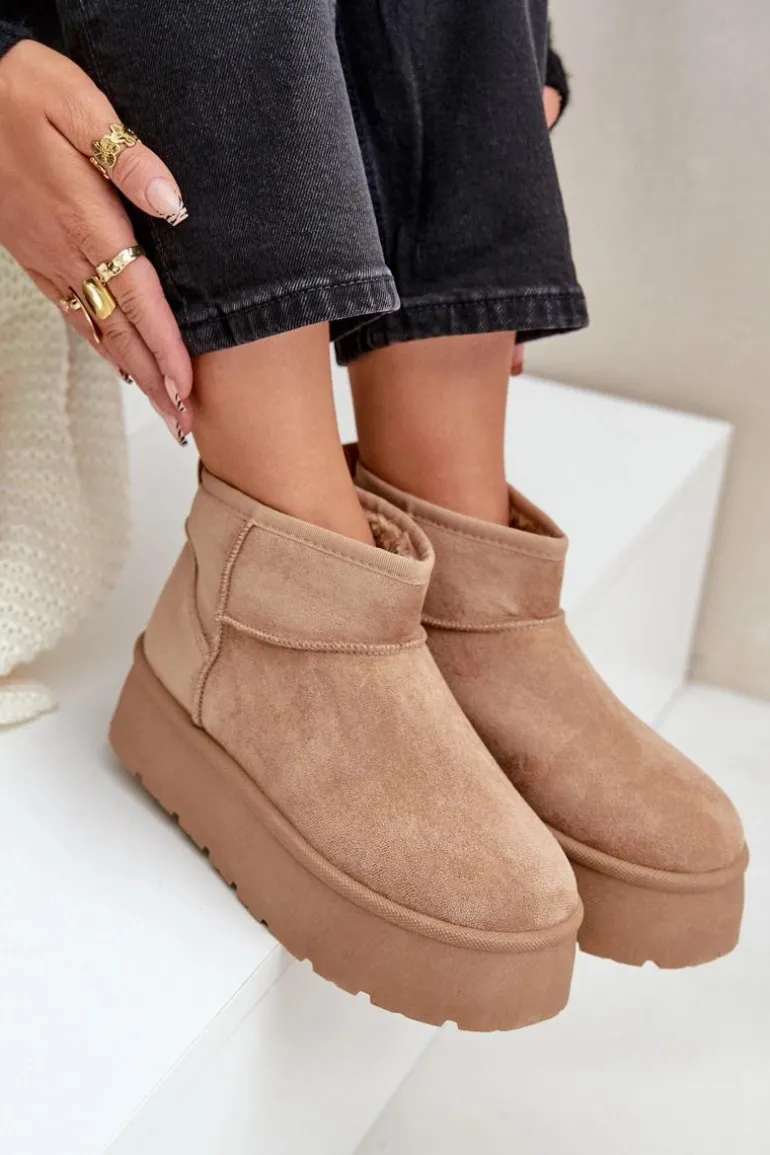 Damskie Śniegowce Na Platformie Ciemnobeżowe Ninala