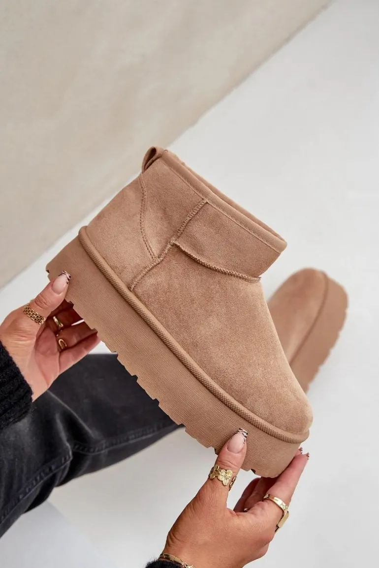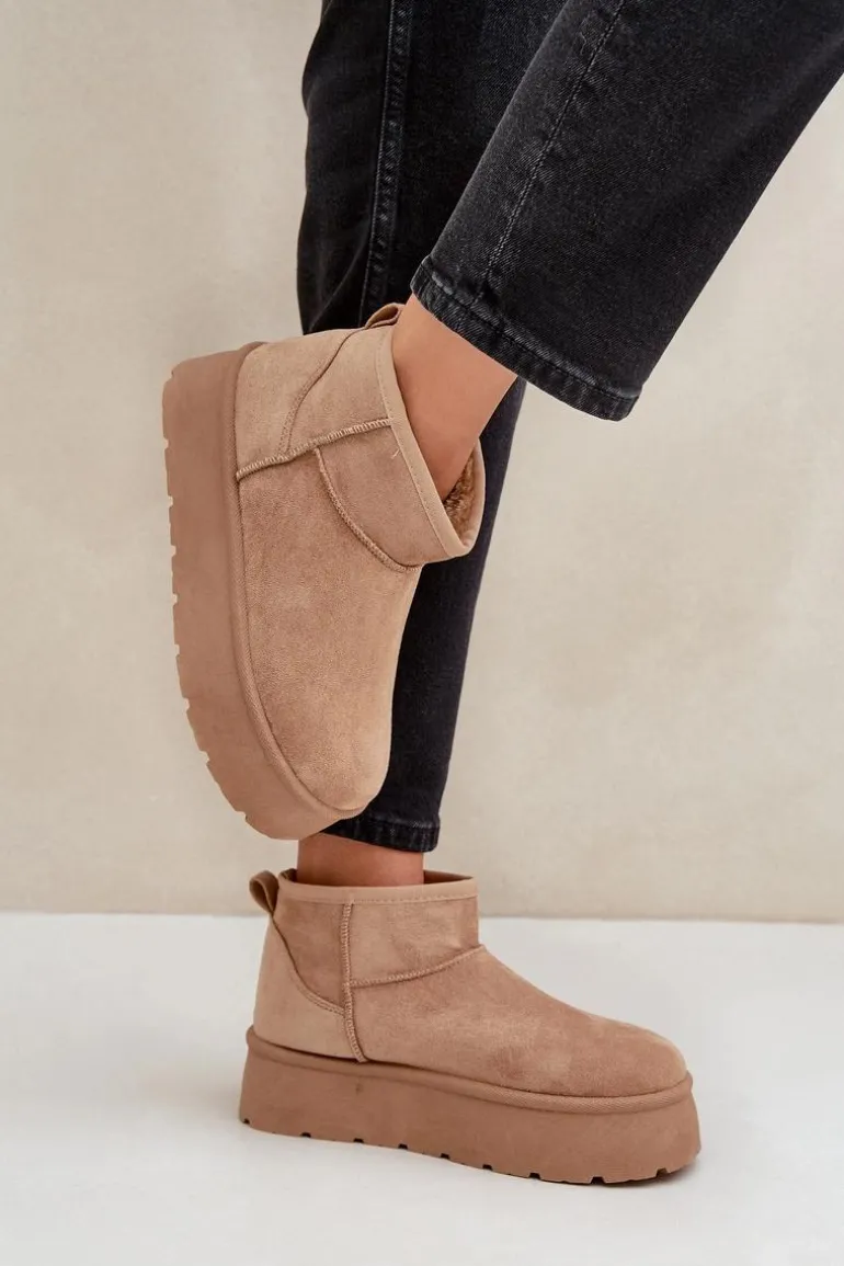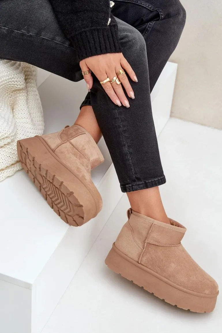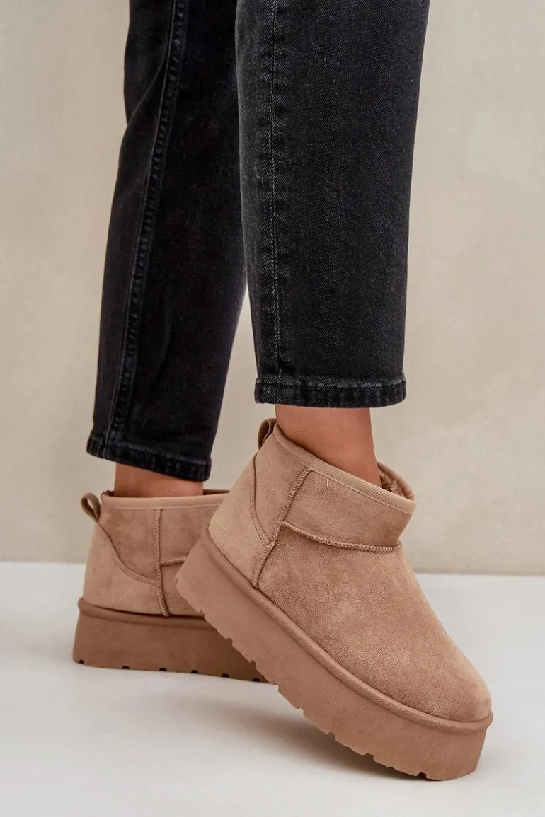 Damskie Śniegowce Na Platformie Ciemnobeżowe Ninala