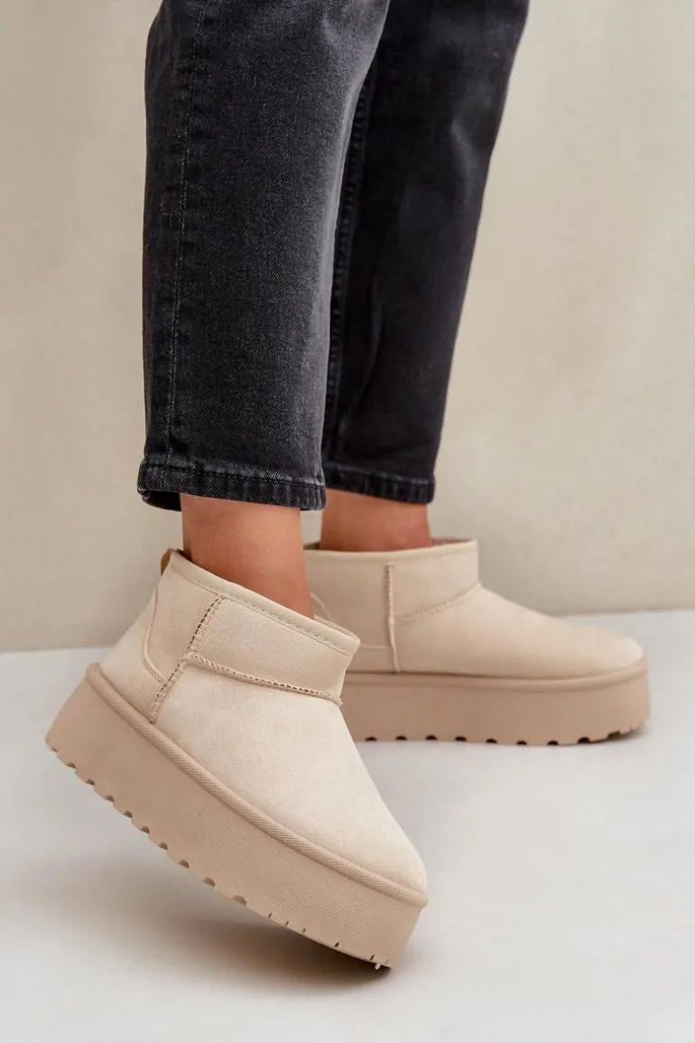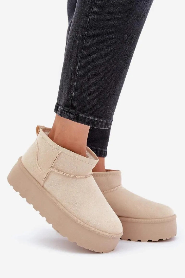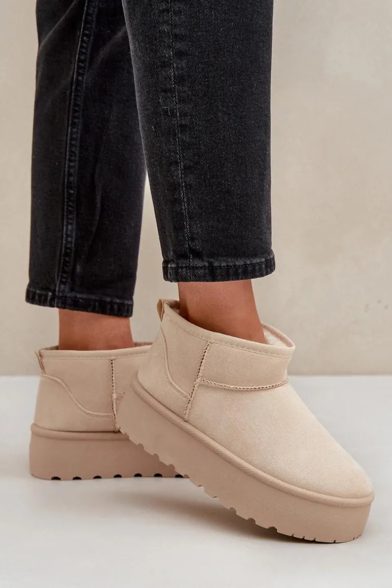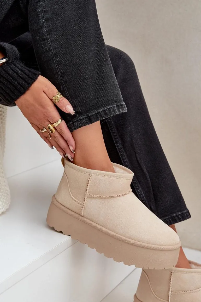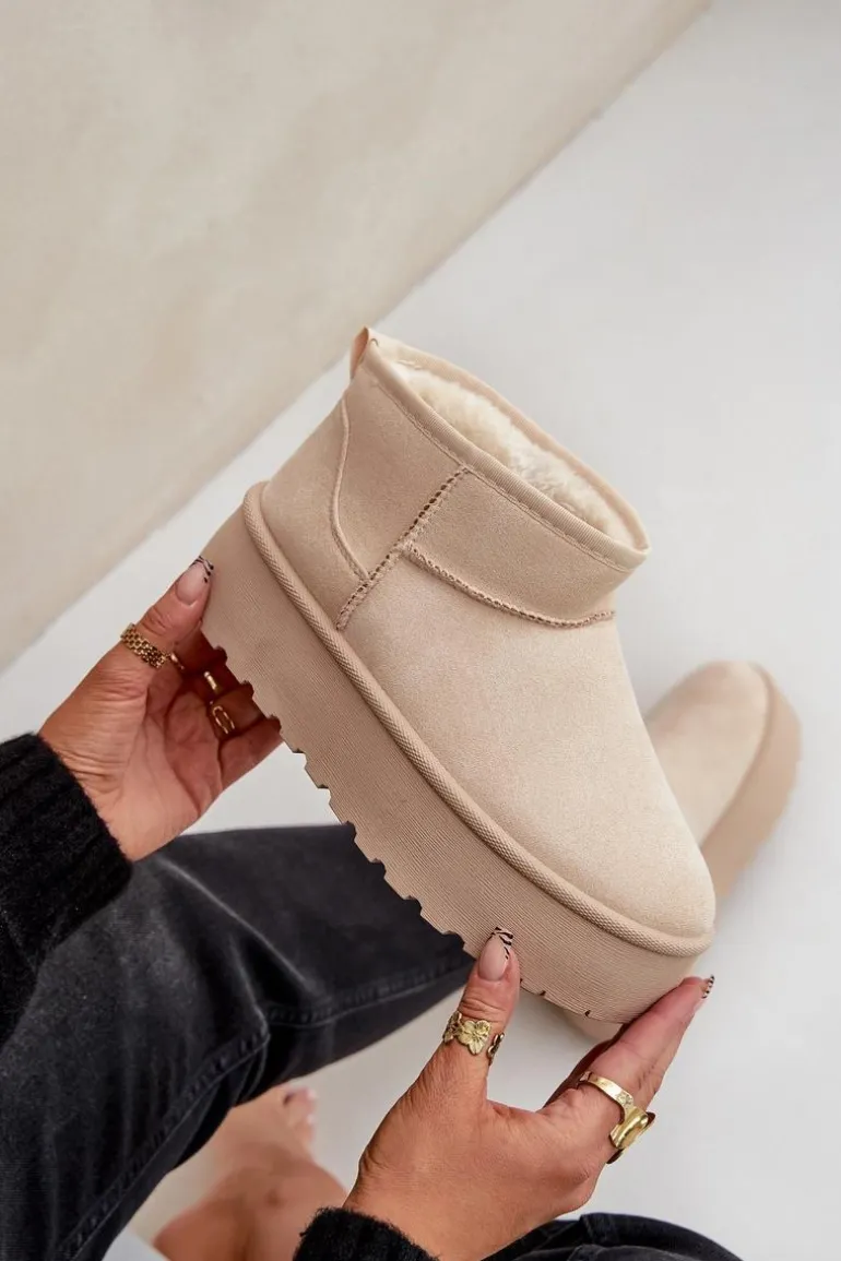 Damskie śniegowce wykonane z eko zamszu. Osadzone na masywnej platformie z gumowego tworzywa. Cholewka do kostki. Środek ocieplony futerkiem. Ten modny model będzie idealny do niemalże każdej jesienno-zimowej stylizacji! Koniecznie powinnaś je mieć! Przy wyborze rozmiaru prosimy sugerować się tabelą rozmiarów.